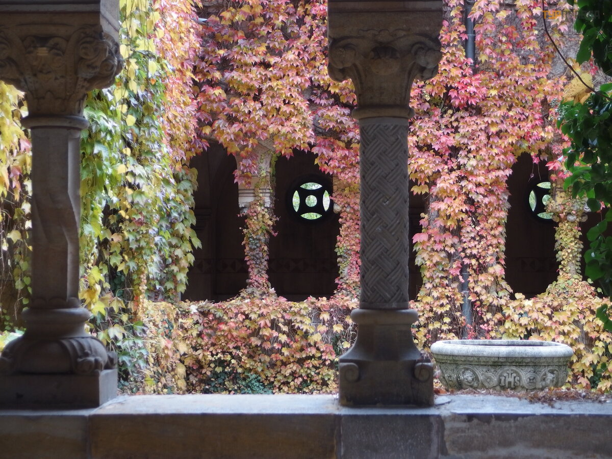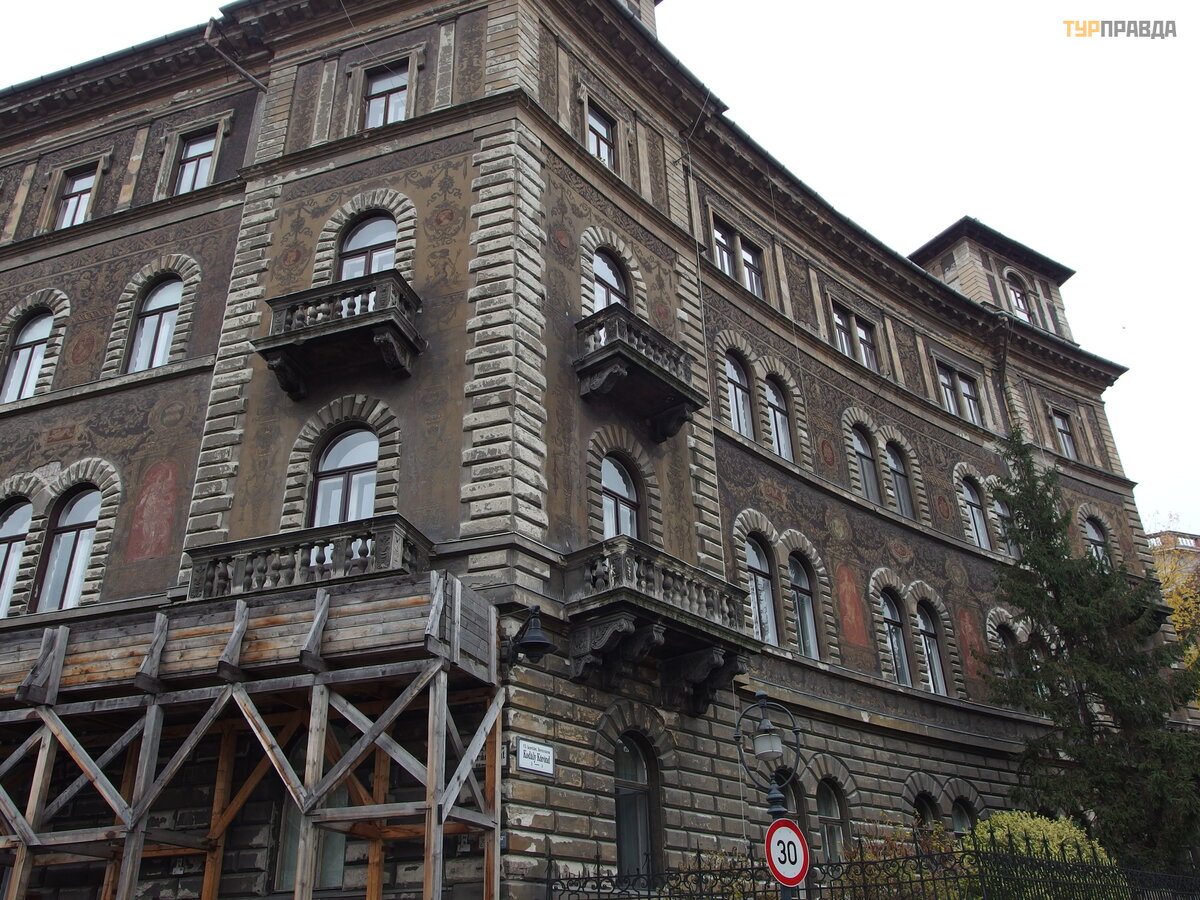 Na lewo od ostroł ukowej bramy gł ó wnego wejś cia wznosi się.37-metrowa Wież a Tortur, przypominają ca baszty bastionowe twierdz gó rnowę gierskich. Po jej prawej stronie znajduje się bardziej przysadzista Ś cię ta Wież a z miasta Sighisoara w Transylwanii.