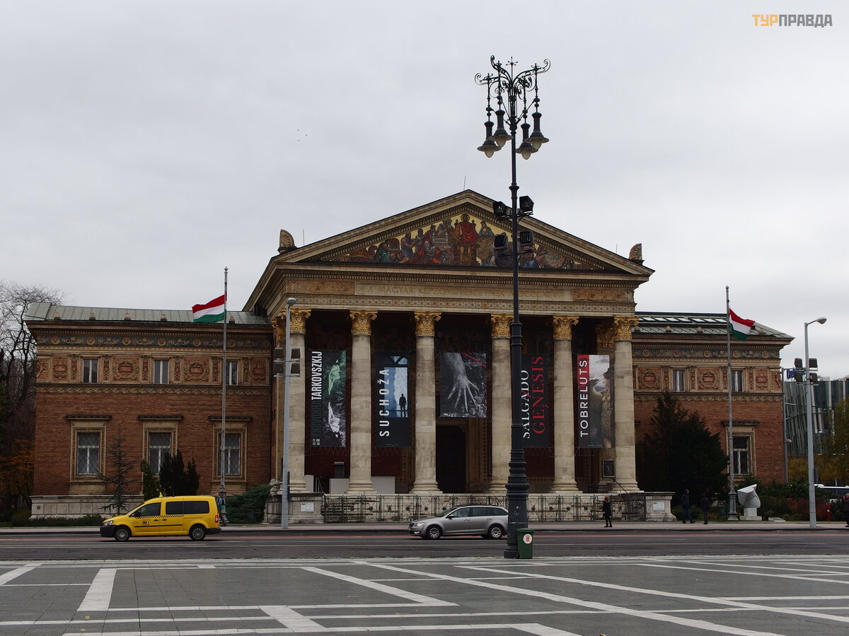 Muzea Sztuk Pię knych (1906, Albert Schiedanz i Fü lö p Herzog) to najwię ksza kolekcja sztuki zagranicznej na Wę grzech. Opierał się na kolekcjach prywatnych, m. in. rodziny Esterhazy i Zichy. W kolekcji znajdują się zabytki sztuki staroż ytnego Egiptu, antycznej, bizantyjskiej, starowę gierskiej, unikalna kolekcja grafiki europejskiej z XV-XX w. , obrazy i rzeź by mistrzó w europejskich z XIII-XX w. Gł ó wne wejś cie do muzeum zdobi potę ż ny portyk z korynckimi kolumnami. Na jej frontonie znajduje się kopia kompozycji rzeź biarskiej z zachodniej ś ciany ś wią tyni Zeusa w Olimpii (Grecja). Przedstawia jeden ze sł ynnych odcinkó w staroż ytnej mitologii greckiej, opowiadają cy o bitwie centauró w i lafitó w na weselu Perithousa.