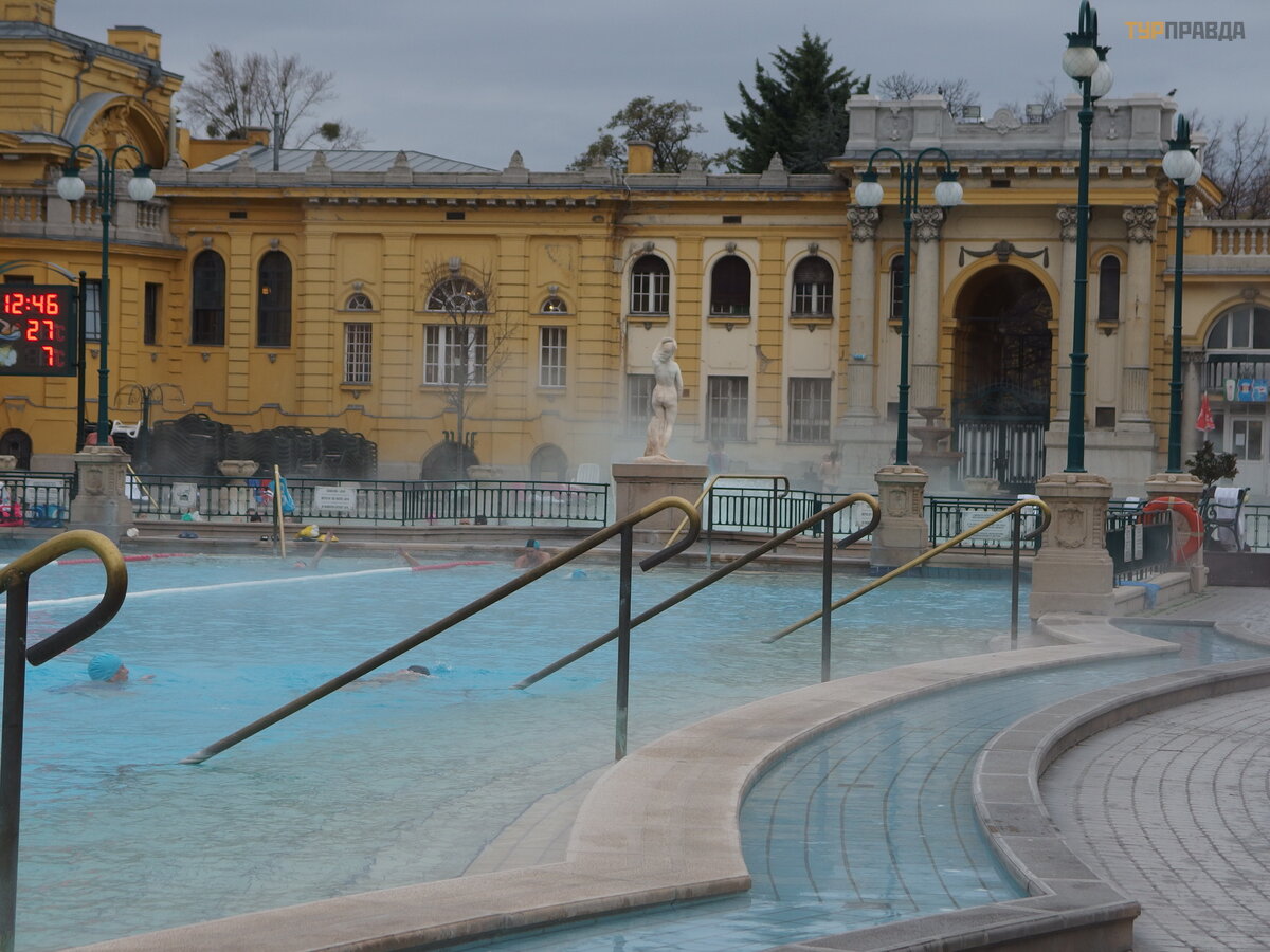 W latach 80. W XIX wieku inż ynier gó rnictwa Vilmos Zsigmondy odkrył tutaj ź ró dł o leczniczej wody termalnej i postawił w tym miejscu pawilon balneologiczny. W latach 1909-1913 wybudowano tu rozległ y kompleks ką pielowy „Szechenyi”, któ ry do dziś nie ma sobie ró wnych w Starym Ś wiecie. Jego projekt organicznie ł ą czy elementy styló w architektonicznych charakterystycznych dla przeł omu XIX i XX wieku. W 1927 roku kompleks rozbudowano o ł aź nię publiczną dla kobiet i mę ż czyzn oraz o nowe skrzydł o plaż owe. O ile po stronie Budy duż ą rolę w powstaniu osadnictwa i rozwoju kultury ką pielowej odegrał y liczne naturalne ź ró dł a termalne, to po stronie Pesztu do 1878 r. nie był o ani ź ró deł , ani studni z wodą termalną . Ś wiatowej sł awy wę gierski naukowiec i inż ynier Vilmos Zsigmondy w 1868 roku rozpoczą ł gł ę bokie wiercenia w parku Varogyliget. W efekcie ze studni o gł ę bokoś ci 970 m wydostał a się woda lecznicza o temperaturze 74 stopni Celsjusza. Ta studnia dawał a 350-400 litró w wody na minutę . Chociaż propozycja budowy ł aź ni dotarł a z Brukseli do Budapesztu, sama rada miejska rozpoczę ł a budowę poprzedniczki dzisiejszej ł aź ni, ł aź ni artezyjskiej.