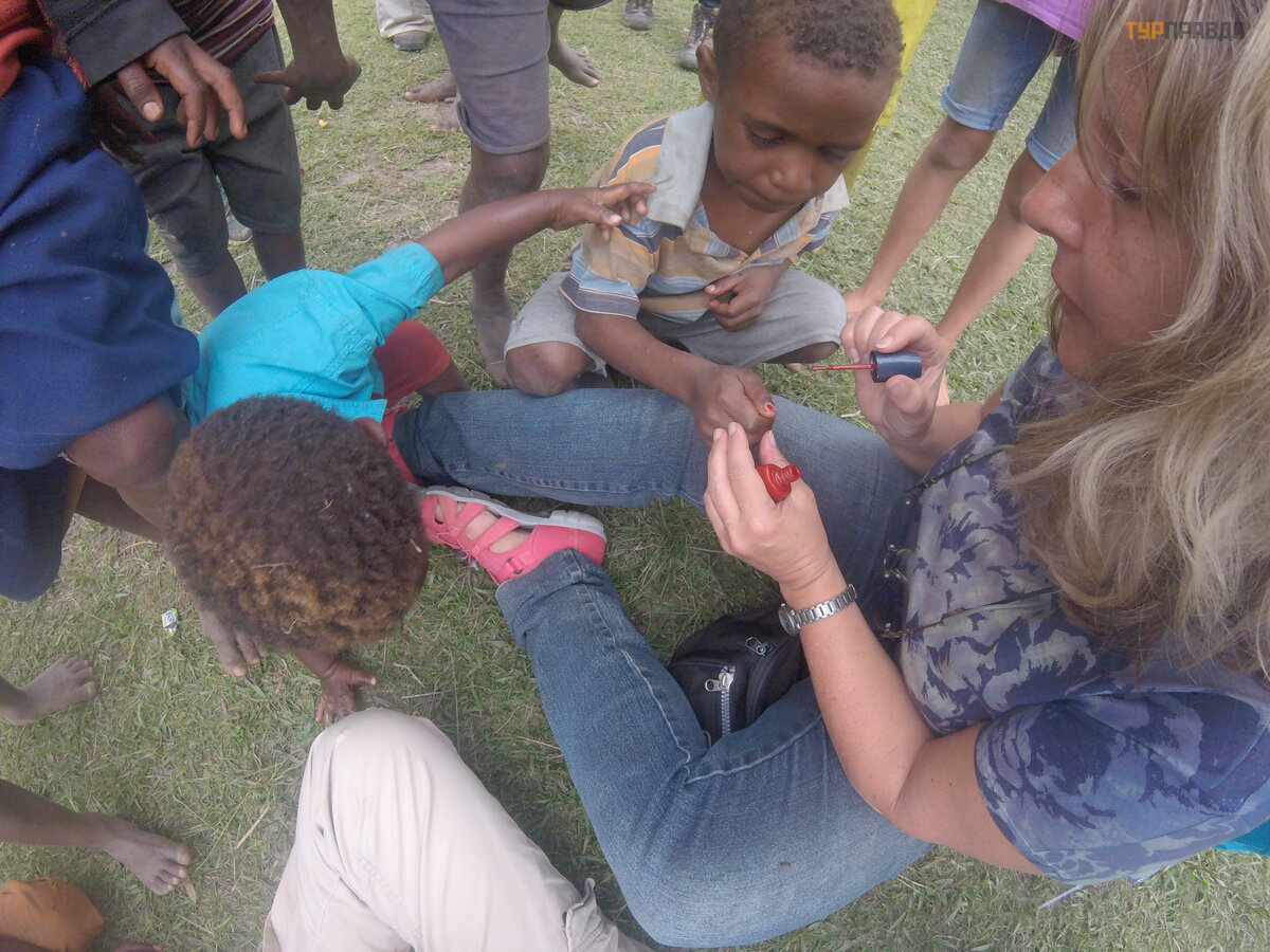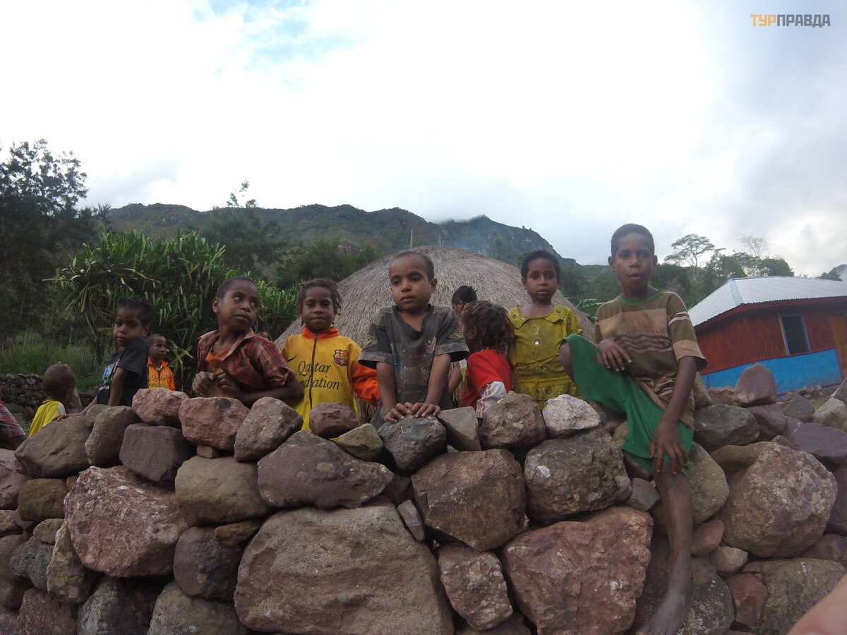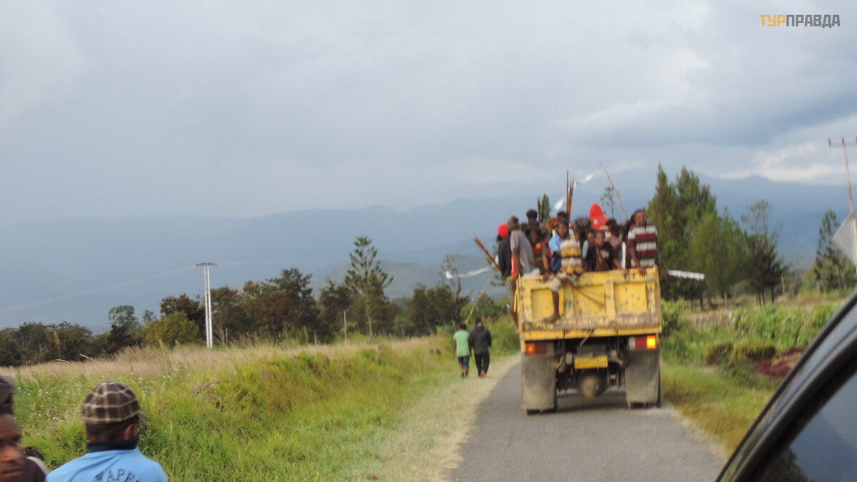 kiedy termin miną ł , przyszli do wioski na pojedynek, a on uderzył kogoś wł ó cznią w nogę i nie był o potrzeby telefonó w komó rkowych, wieś natychmiast zebrał a się na wojnę . Widać , ż e samochó d nie mó gł się do nas przebić , zaproponowano nam spę dzenie z nimi nocy, ale rano mieliś my samolot i przewodnik zdecydował się jechać ! Kiedy szliś my, wyprzedzali nas ludzie uzbrojeni, niektó rzy z siekierą , niektó rzy z ł ukiem, niektó rzy z wł ó cznią , a niektó rzy w kotku