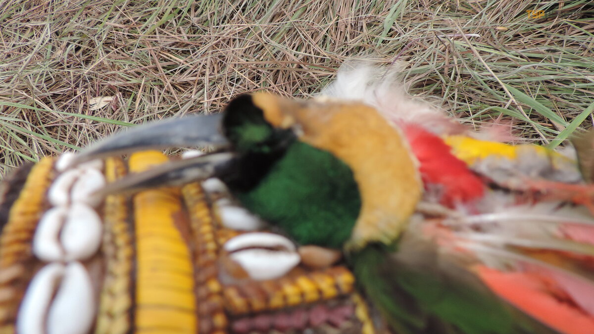 kapelusz jest bardzo drogi, a eksport z kraju jest zabroniony, ponieważ jest bardzo pię kny i rzadki rajski ptak