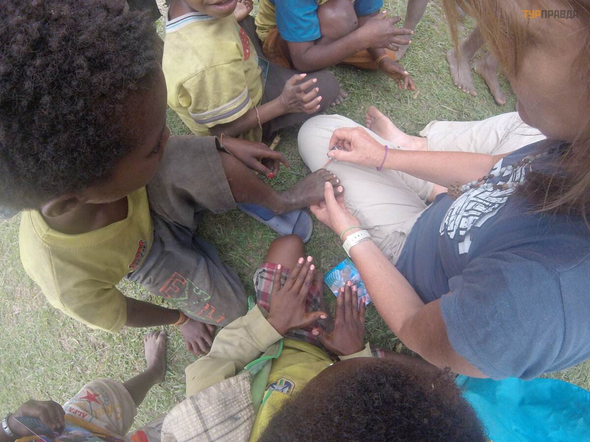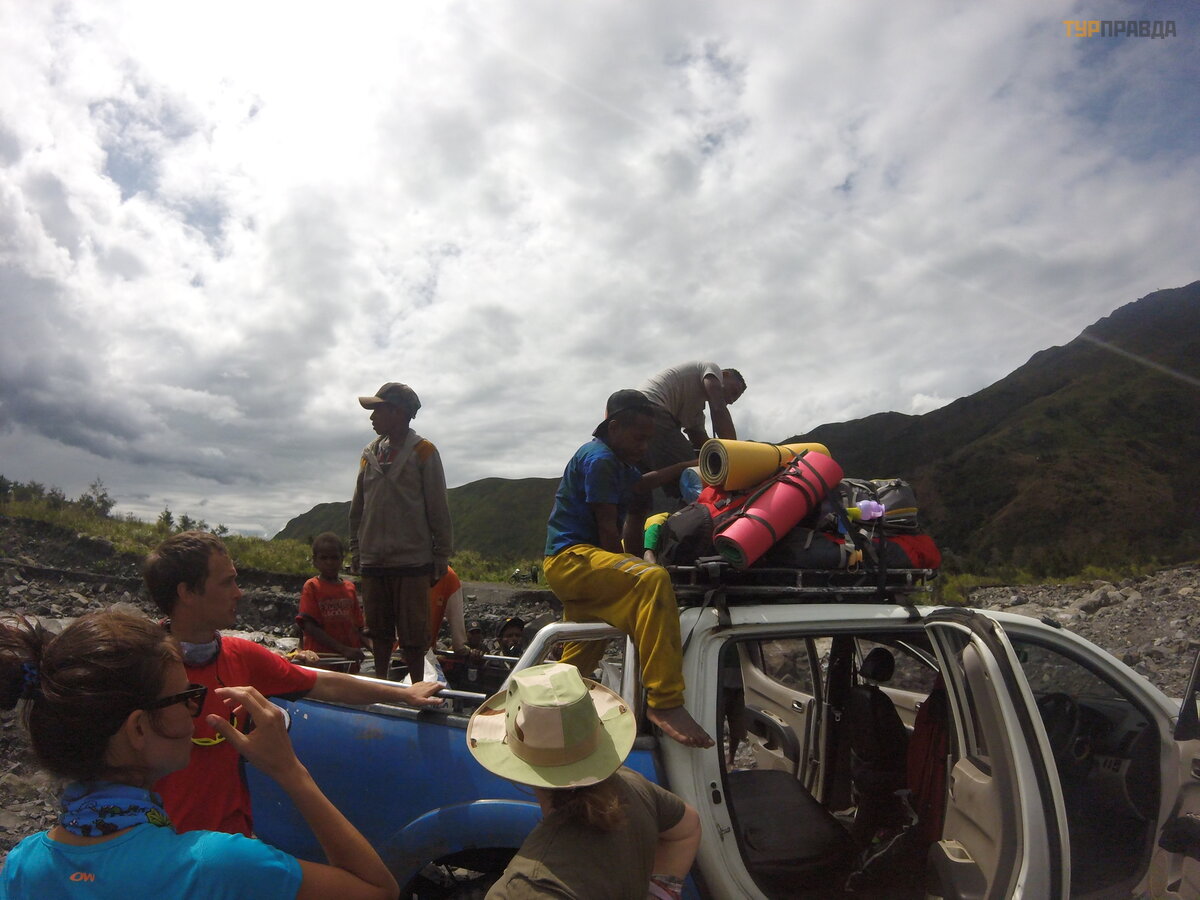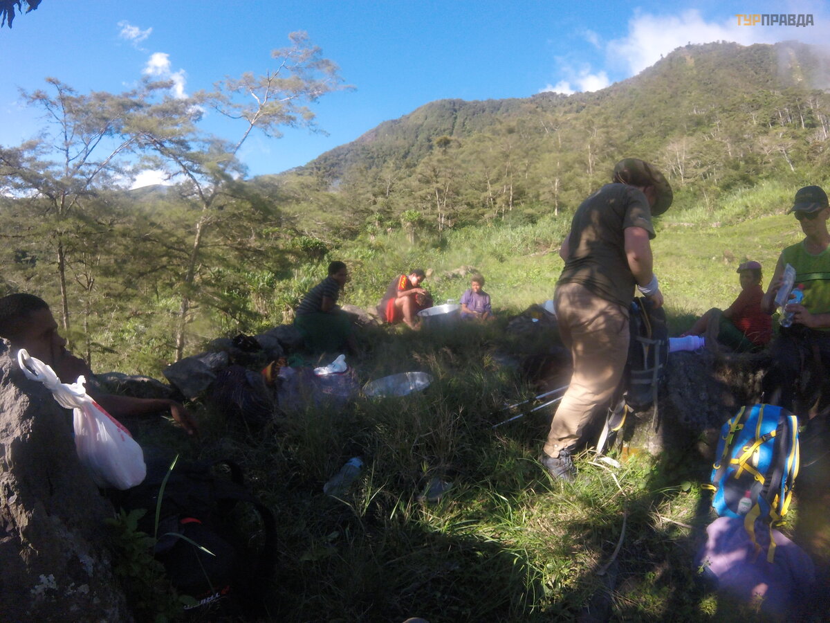 Na Bali byliś my bardzo mał ą grupą , Natalia z Australii, Oksana z Kijowa oraz ja i mó j mą ż . W Popua doł ą czył a do nas Alena z Kijowa i nasz przewodnik Orest (nasz pilot wycieczek, inspirator i oprawca), któ ry poleciał do Popua kilka dni wcześ niej i dał nam pozwolenie na pobyt w kraju, wię c po przyjeź dzie nie spodziewać się kogokolwiek lub czegokolwiek, dostaliś my nasze plecaki i przenieś liś my się do hotelu.