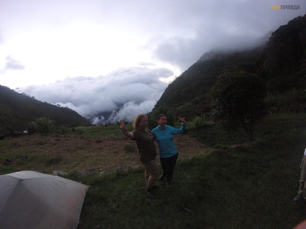 Przyjechaliś my na nasz drugi nocleg, wysokoś ć.2, 2 - widok jest OSZAŁ AMIAJĄ CY! Jesteś my ponad chmurami! Nie wolno im był o rozbijać namiotó w, moż e myś leli, ż e oddanie nam wszystkim takiego baraku jest dla nas najwyż szym szacunkiem