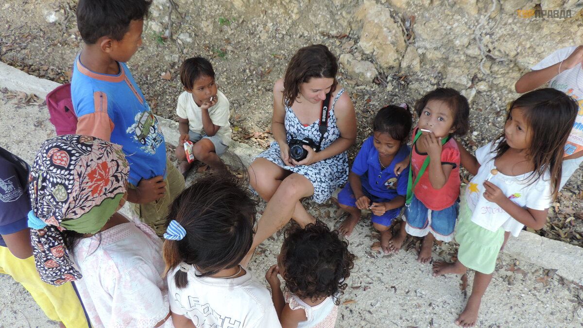 Aby się tu dostać , trzeba odbyć cztery loty, potem jechać cał ą noc autobusem po wę ż owych drogach do miasta Ampana, a potem 3 godziny na ł odzi i oto jest kraniec krainy Togeana! Wyspa poł oż ona jest 30 km od ró wnika, w pobliż u duż ej rafy koralowej,