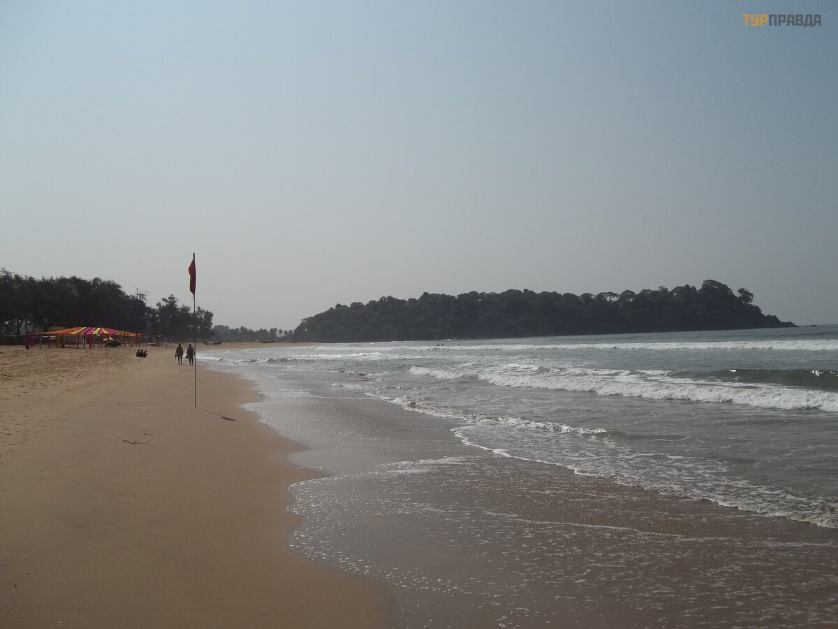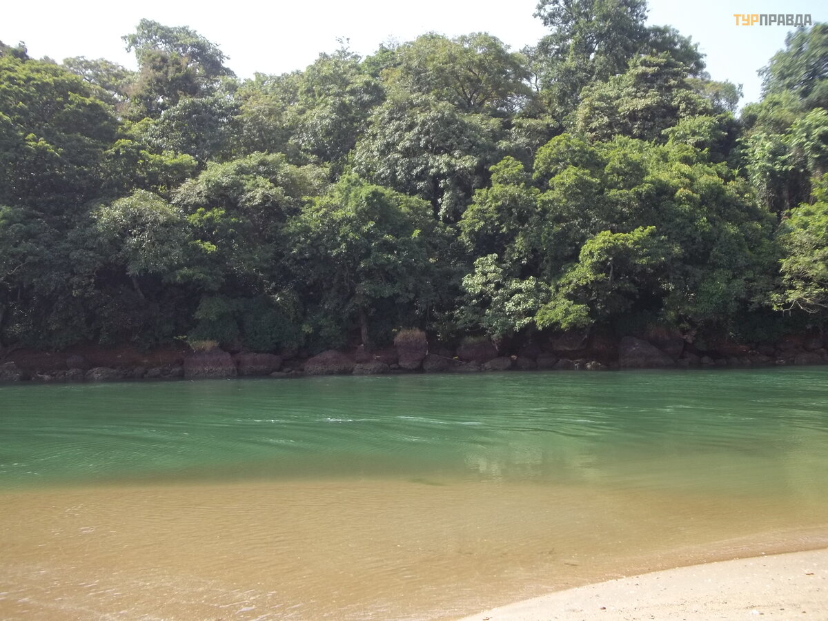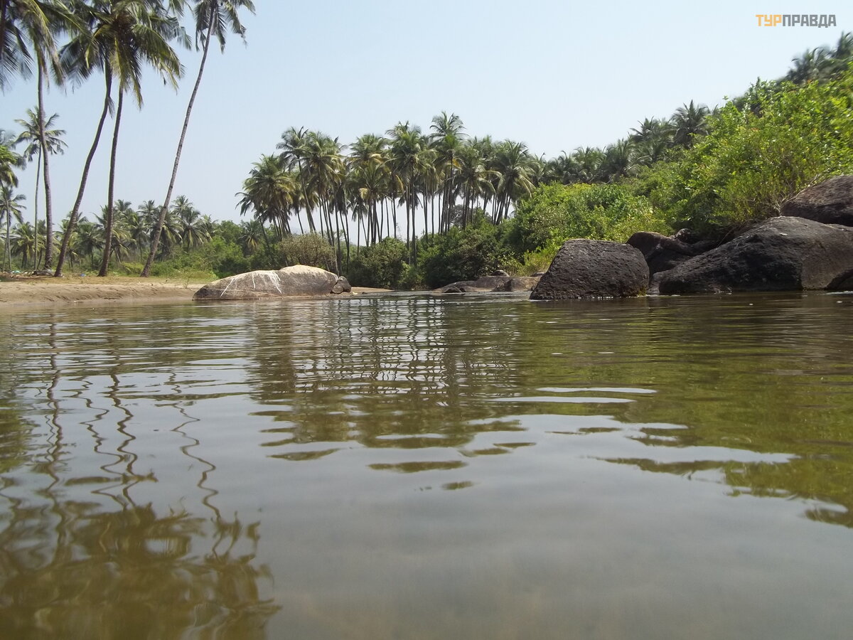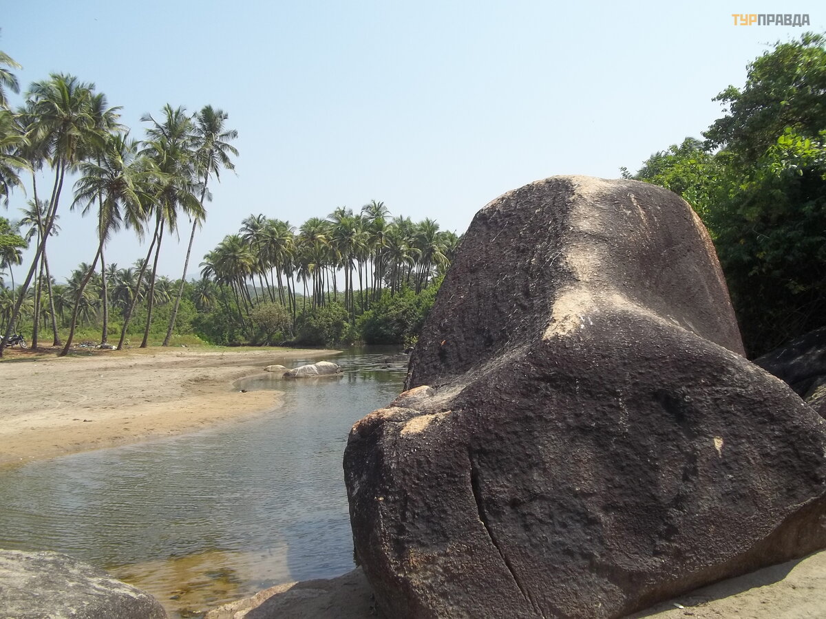 Po ominię ciu go i ominię ciu wzgó rza zostawili Verkę , by strzec dż onki, i sami poszli dalej. Po drodze wyraź nie zaczę li się spotykać nasi ludzie - nie moż na był o pomylić ich religii (nawiasem mó wią c, naszej też ). Był em zaskoczony, bo na Agonda był tylko jeden lub dwó ch Rosjan i nie był o ich wielu. Doś ć daleko od wody stał rzą d leż akó w. Przyglą dają c się bliż ej, zobaczył em stó ł z rę cznikami w paski. I wtedy przypomniał em sobie, ż e znajduje się tutaj super-dupi hotel Lalit. Jednak za wydmą w ogó le nie był widoczny. Wł aś nie tam jest ich tak wielu! Ta plaż a nazywał a się Rajbag. Nic specjalnego. Na poł udniu ogranicza ją rzeka Talpona, na któ rą wpadliś my.