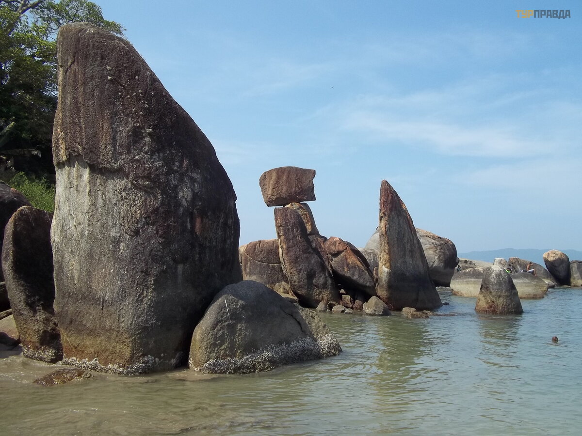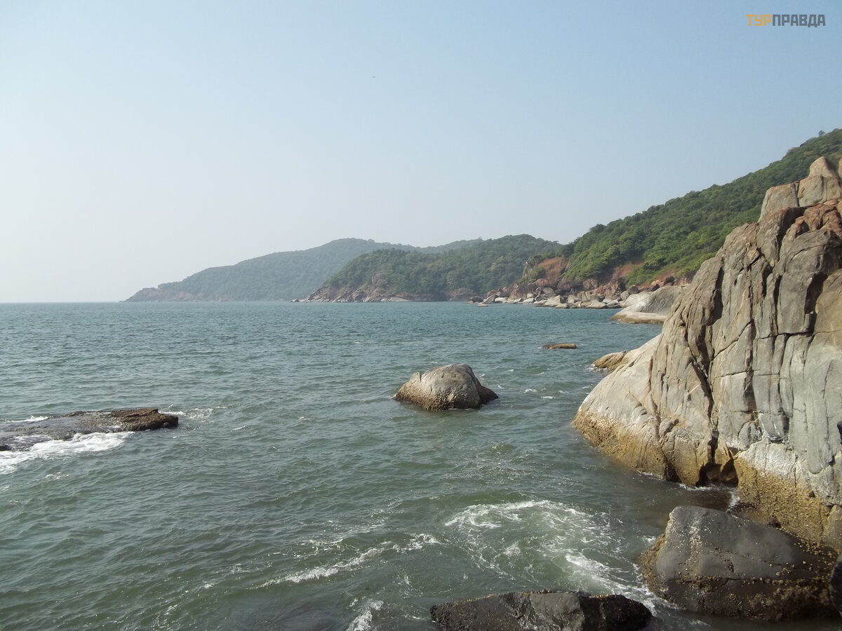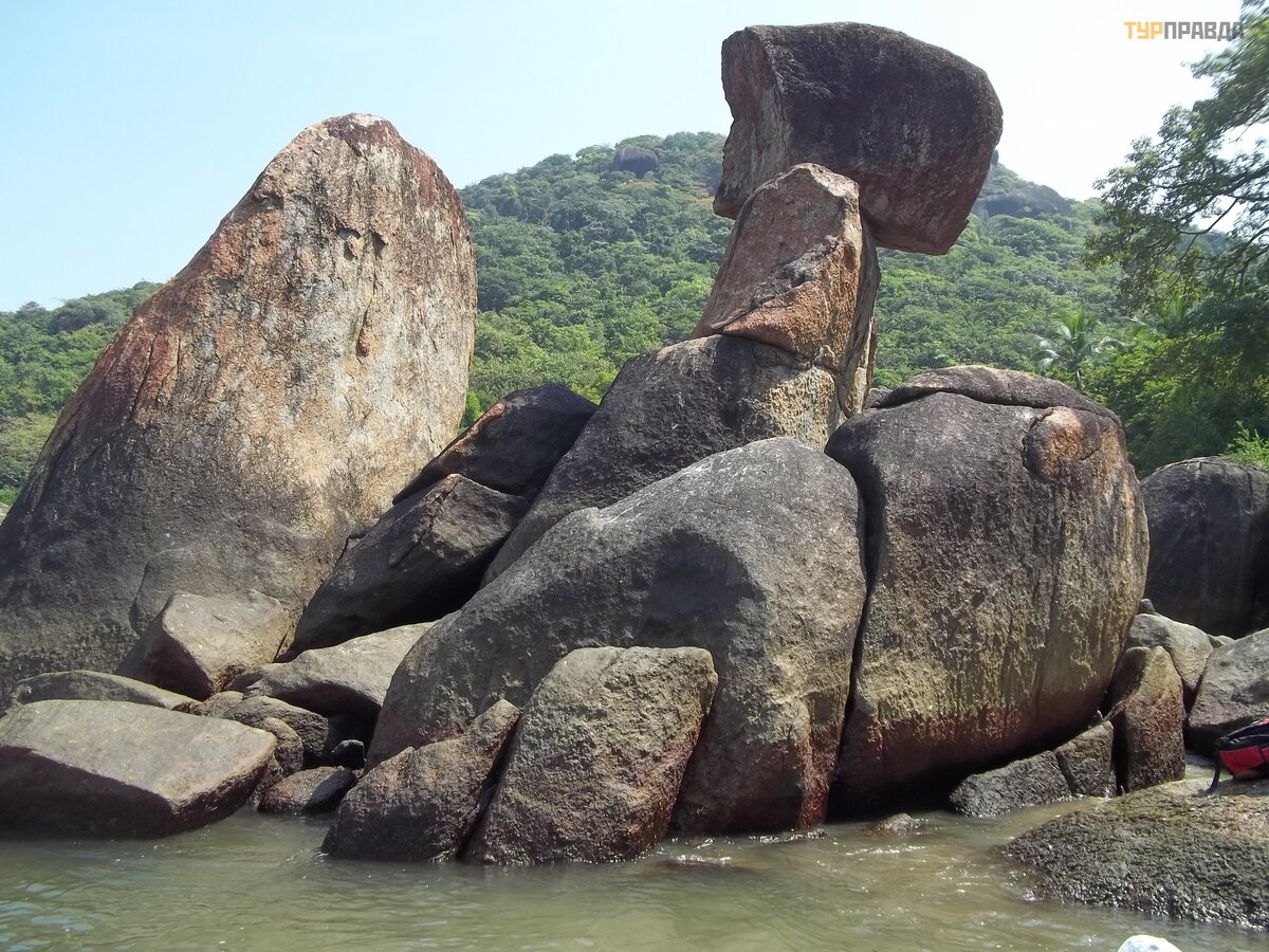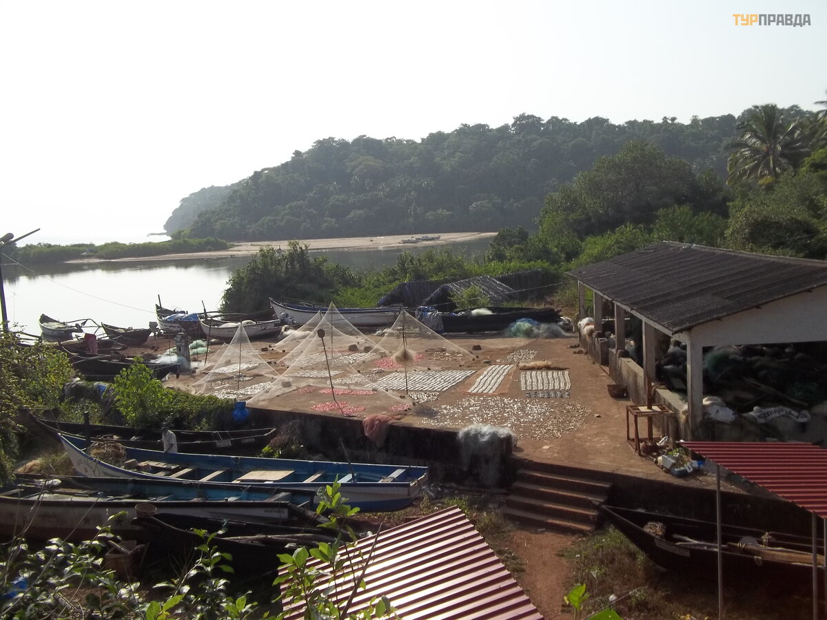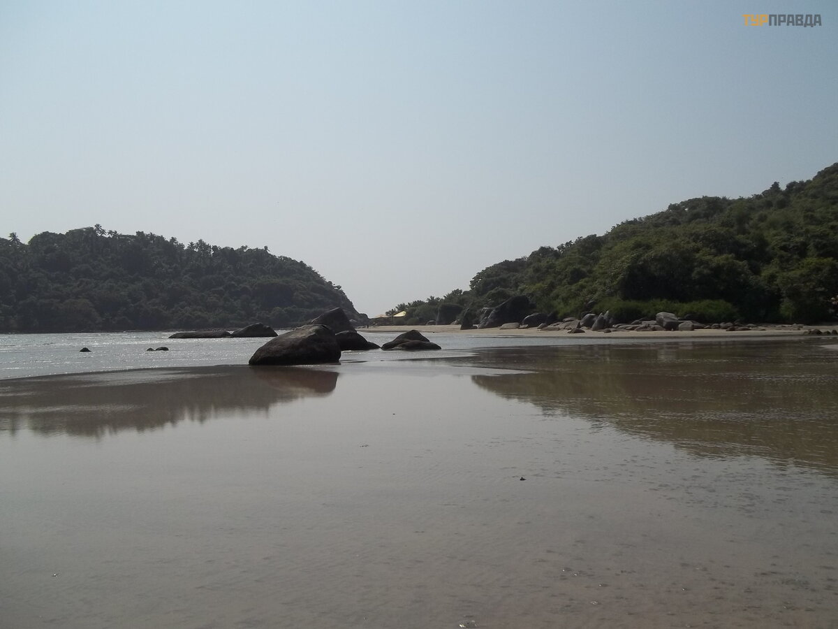 Po ominię ciu go i ominię ciu wzgó rza zostawili Verkę , by strzec dż onki, i sami poszli dalej. Po drodze wyraź nie zaczę li się spotykać nasi ludzie - nie moż na był o pomylić ich religii (nawiasem mó wią c, naszej też ). Był em zaskoczony, bo na Agonda był tylko jeden lub dwó ch Rosjan i nie był o ich wielu. Doś ć daleko od wody stał rzą d leż akó w. Przyglą dają c się bliż ej, zobaczył em stó ł z rę cznikami w paski. I wtedy przypomniał em sobie, ż e znajduje się tutaj super-dupi hotel Lalit. Jednak za wydmą w ogó le nie był widoczny. Wł aś nie tam jest ich tak wielu! Ta plaż a nazywał a się Rajbag. Nic specjalnego. Na poł udniu ogranicza ją rzeka Talpona, na któ rą wpadliś my.