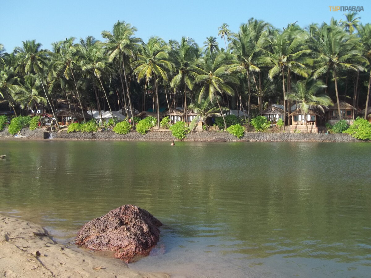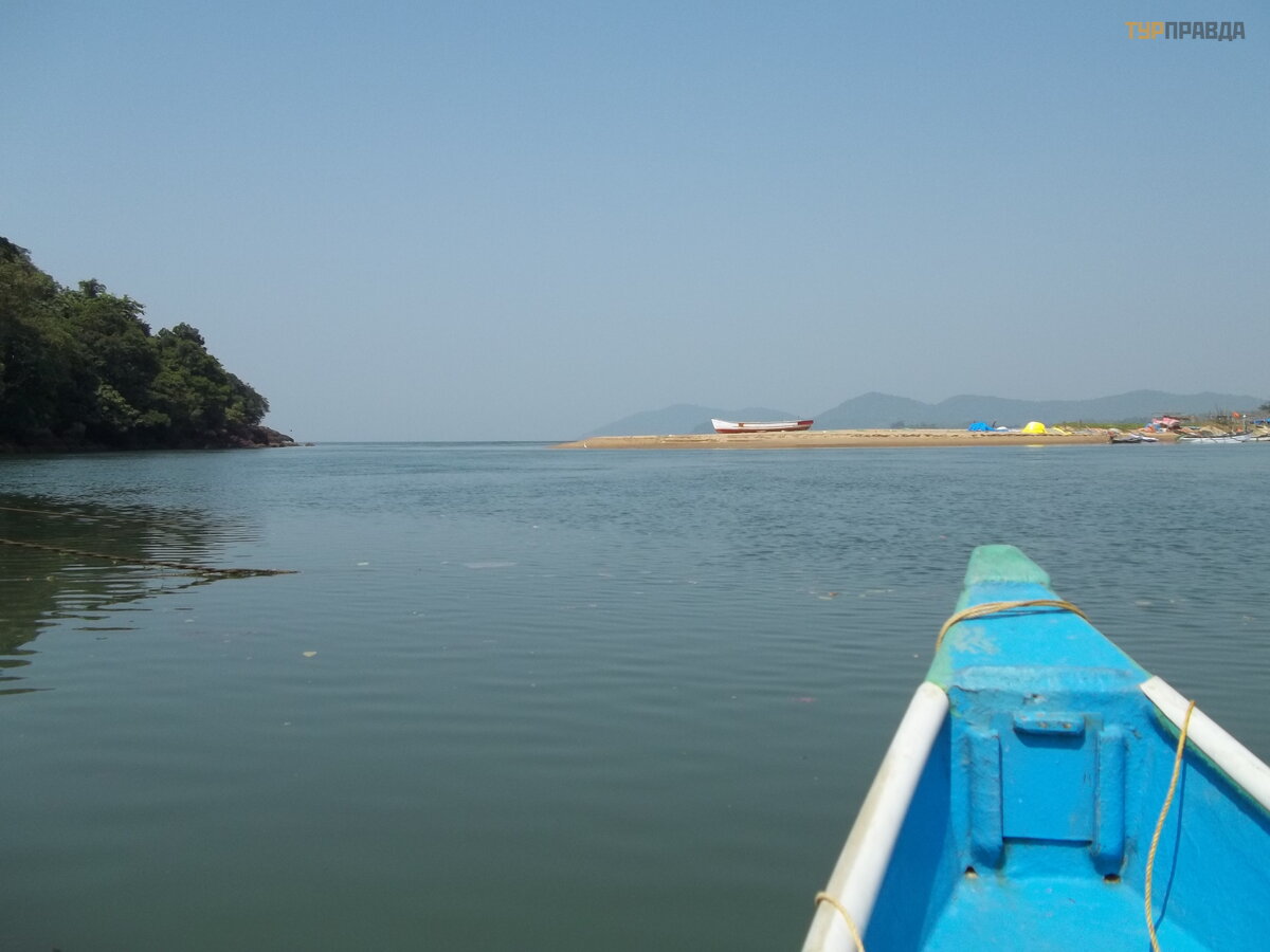 Tu był o trochę fajniej - ł odzie rybackie, mał a ś wią tynia i kilka osó b. Nawet kilku biał ych. Podszedł chł opiec i zaproponował nam ł ó dź . Odmó wiliś my. Ale potem pomyś leli o tym i postanowili nie wracać autobusem, ale wynają ć ł ó dkę i przepł yną ć rzekę o tej samej nazwie, co plaż a, i tak wylą dowali na plaż y Rajbag (tam, gdzie znajduje się fajny hotel Lalit). A tam jest już bardzo blisko Palolem. Chł opak zaprowadził nas na brzeg i uwió dł przewoź nika. Za przeprawę poprosił o 50 rupii z nosa. Bez targowania się weszliś my do ł odzi. Pł ywanie nie ma nic. Prawdopodobnie moż na by się targować . Có ż , niech go Bó g bł ogosł awi!