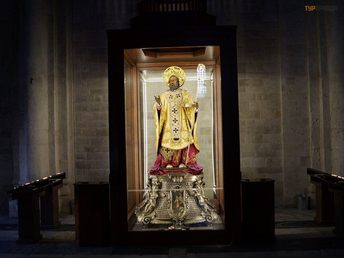 Po przyjeź dzie spotkaliś my się z naszym przewodnikiem i od razu udaliś my się do najważ niejszego i znaczą cego miejsca w mieś cie – Bazyliki ś w. Mikoł aja. Bazylika wyglą da po prostu niesamowicie, trzeba ją zobaczyć na wł asne oczy, ż eby uwierzyć w istnienie tak niesamowitego miejsca. Nastę pnie udasz się na Boską Liturgię po rosyjsku, a po niej bę dziesz miał niepowtarzalną okazję dotkną ć relikwii Ś w. Mikoł aja niosą cych mirrę . Takie wydarzenie na pewno nie zdarza się czę sto w ż yciu, to naprawdę wyją tkowe przeż ycie. Specjalny sakrament, któ rego moż esz doś wiadczyć razem z innymi bliskimi Ci osobami w ś wią tyni, ale jednocześ nie gł ę boko osobistymi, w swojej duszy. Bę dziesz mó gł prosić wielkiego Ś wię tego o najważ niejsze rzeczy. Nastę pnie udasz się na posił ek do mił ej wł oskiej restauracji, gdzie zaoferują Ci pyszne dania kuchni wł oskiej, sał atki, spaghetti, pyszne wina. A potem znajdziesz niesamowity spacer po mieś cie Bari. Mał e wą skie uliczki, greckie dzielnice, lokalne atrakcje – to wszystko niesamowicie oddaje klimat tego miasta. Po przyjemnym poznaniu miasta wracasz ponownie do bazyliki, aby szczegó ł owo posł uchać o historii tego niesamowitego miejsca. Ostatnim punktem zabytkó w, któ re odwiedziliś my, był dziedziniec rosyjskiego klasztoru, na któ rym znajduje się ró wnież wiele ś wią tyń . Nastę pnie z przyjazną obsł ugą jedziesz na lotnisko, ską d wracasz na grecką ziemię . Wycieczka trwa cał y dzień , ale to naprawdę jeden z najważ niejszych dni w naszym ż yciu. Specjalne podzię kowania dla przewodnika, bez jego wiedzy i umieję tnoś ci mó wienia, wycieczka nie był aby tak imponują ca!