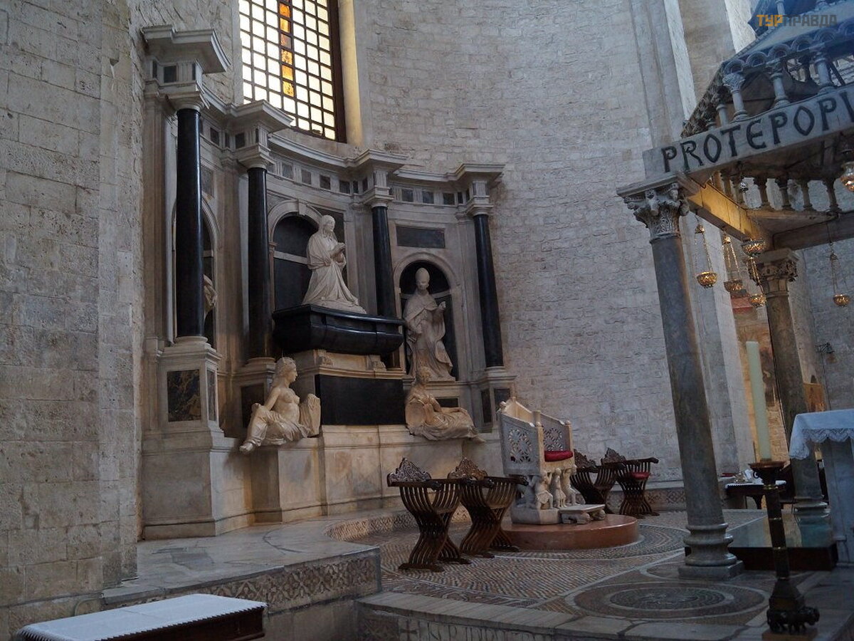 Witam wszystkich, naprawdę chcę podzielić się z wami moimi wraż eniami z jednej wyją tkowej wycieczki. Jedną z jego cech jest to, ż e lecisz do celu i wracasz samolotem, co samo w sobie jest wygodne i pozwala zaoszczę dzić duż o czasu. Od razu wykupił em tę wycieczkę i wcale tego nie ż ał ował em, bo perspektywa cał onocnego dopł ynię cia promem do Bari nie bardzo mnie ucieszył a. Wszystko zaczę ł o się od tego, ż e z hoteli ja i inne osoby odbieraliś my autobusem. Wszyscy razem dotarliś my na lotnisko, przeszliś my kontrolę paszportową , wsiedliś my do samolotu i po 40 minutach byliś my już we Wł oszech. Wszystko jest jasne, szybkie, zorganizowane. Po przyjeź dzie powitali nas nasi przewodnicy i udaliś my się do autobusó w, któ rych numery został y nam wcześ niej podane. Jak tylko autobus ruszył , zaczę ł a się nasza podró ż . Pierwszą rzeczą , któ rą odwiedziliś my, był a Bazylika Ś w. Mikoł aja Cudotwó rcy. W bazylice znajdują się jego pł yną ce z mirry relikwie, któ rym moż na oddać cześ ć . Udał o mi się przyją ć komunię , umó wić modlitwy za moich bliskich i przyjació ł i oczywiś cie czcić relikwie tego ś wię tego. Chcę powiedzieć , ż e to miejsce jest niesamowite, jest tam tak spokojnie i jest takie uczucie, ż e cudowna moc przenika na wskroś , a jasne uczucia ogarniają . Po naboż eń stwie każ dy mó gł kupić dla siebie wspaniał y ś wiat, podś wietlane ikony, krzyż e. Potem poszliś my na posił ek. Mm, wł oskie jedzenie. Powiem ci, ż e duż o wiedzą o jedzeniu. To był o pyszne. Najpierw przynieś li nam przystawki (ser mozzarella z pomidorkami koktajlowymi, bagietka pesto, wę dliny), potem był makaron i ryba z chipsami ziemniaczanymi, a do tego czerwone, ró ż owe i biał e wina. Po obfitym obiedzie. W towarzystwie naszego przewodnika wybraliś my się na zwiedzanie starego Bari, jego greckich dzielnic. Nawiasem mó wią c, przewodnik nazywa się Siergiej. Uroczy, artystyczny i charyzmatyczny mł ody czł owiek. Wszyscy sł uchali z zapartym tchem. W swojej opowieś ci wybrał sł owa, któ re zdecydowanie wkradł y się w duszę każ dego z nas. Wielu miał o ł zy w oczach. Myś lę , ż e był y to ł zy radoś ci i pokoju. Podczas spaceru po starym mieś cie pokazano nam prę gierz, kolejną bazylikę , ulice starego miasta i fortecę . Architektura tutaj jest wyrafinowana i ogó lnie cał e miasto niesie ze sobą osobę / atmosferę smaku i wdzię ku. Po wycieczce odwiedziliś my kolejne ciekawe miejsce - Zwią zek Rosyjski. Znajduje się tu pię kna dwupoziomowa ś wią tynia ze szmaragdowymi kopuł ami. Gó rna czę ś ć to ś wią tynia ś w. Mikoł aja Cudotwó rcy, dolna to Spiridon Trimifundsky. Bardzo pię kny kompleks ś wią tynny z ogromnym ogrodem. Nasz dzień powoli dobiegał koń ca, a to oznacza, ż e trasa też . Naprawdę nie chciał em opuszczać tego miejsca. Ale myś l jest ciepł a, ż e zabrał em kawał ek tego cudu (pokoju) do domu i podzielił em się nim z moimi bliskimi. Serdeczne podzię kowania za to, ż e w tym dniu ludzie mają okazję poczuć , kim jestem.