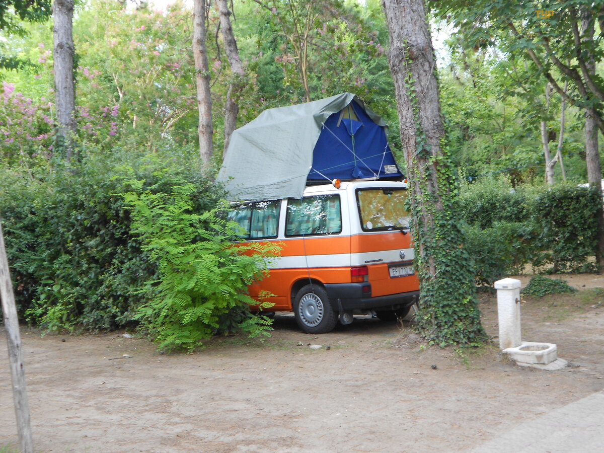 Okreś lono gł ó wne kryteria: cena, bliskoś ć morza, obecnoś ć prywatnego basenu i animacja. Ponieważ na począ tku maja podję to ostateczną decyzję o wyprawie nad morze, został y już ustalone bardziej atrakcyjne opcje. Kemping był pierwszym eksperymentem dla naszej rodziny. To prawda, ż e poję cie biwakowania w Europie nie odpowiada ogó lnie przyję tym wyobraż eniom na ten temat w naszym kraju. Cał y teren kempingu jest bardzo duż y, poł oż ony wś ró d sosen i platanó w. W ten sposó b zawsze jest cień , któ ry chroni przed gorą cem. Zapewnia podł ą czenie do sieci wodocią gowej i elektrycznej. Na miejscu dostę pne są prysznice, toalety i pralnia. Sklep jest, ale ceny w nim są droż sze niż w sieciach Lidl i In. Jest restauracja, kawiarnia.