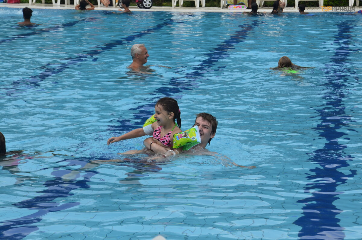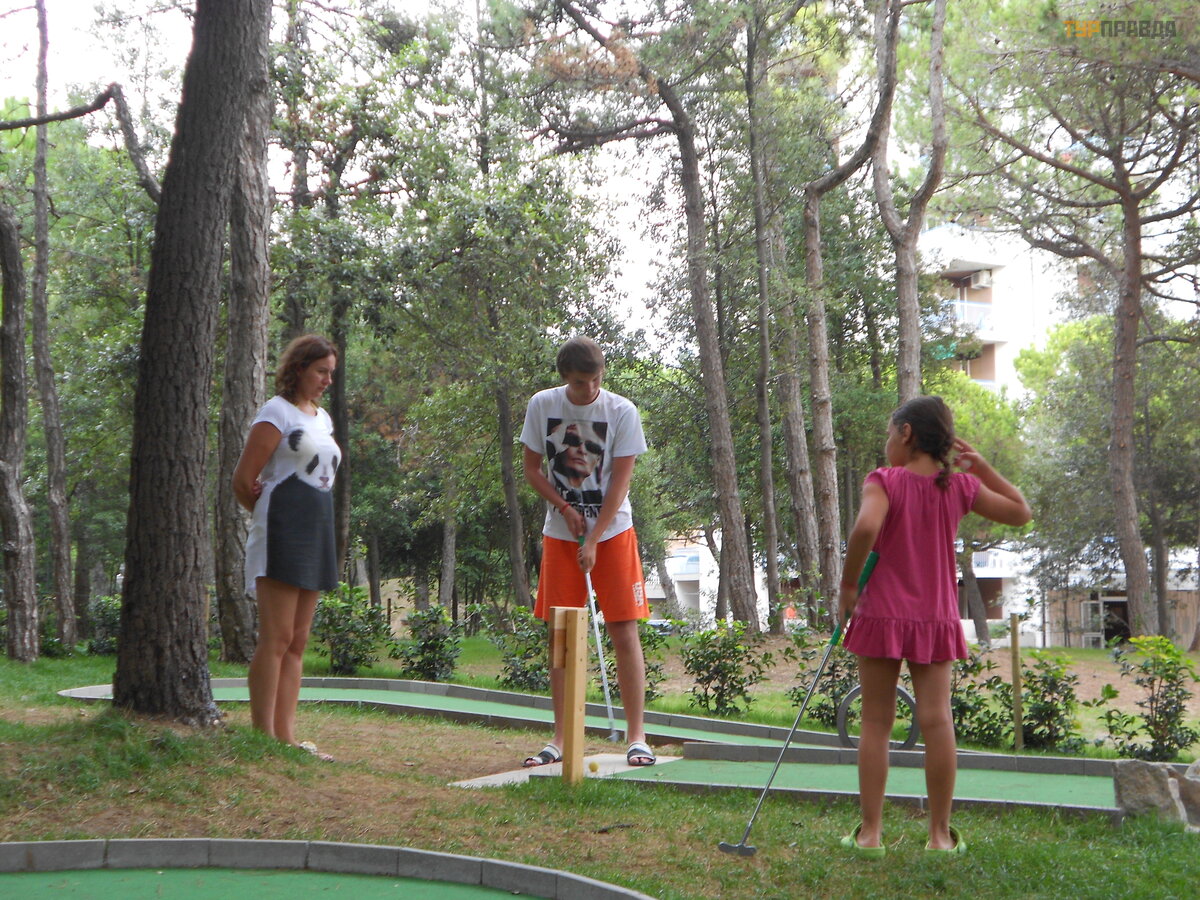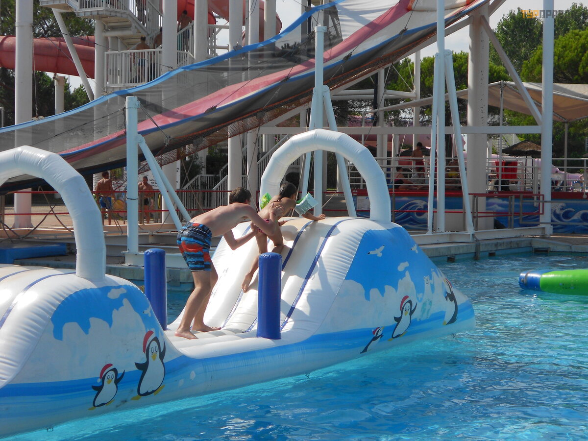 Na terenie znajdują się dwa duż e baseny i jeden dla najmniejszych, zjeż dż alnia, jacuzzi i fontanny. Wokó ł basenó w jest duż o leż akó w, moż na też posiedzieć na zielonym trawniku. Oczywiś cie basen to miejsce, w któ rym spę dzaliś my duż o czasu w cią gu dnia, jeś li z jakiegoś powodu nie byliś my na morzu. W cią gu dnia w basenie odbywa się aerobik w wodzie, wieczorne przedstawienia, animacje dla dzieci. Animatorzy wykonali ś wietną robotę , pokaz z ogniem zapadł w pamię ć , podobnie jak wieczó r dla dzieci, na któ rym odbywał y się ró ż ne konkursy, wszystkie dzieci otrzymał y nagrody, watę cukrową . Jest pł atne wi-fi, wypoż yczalnia roweró w. Lignano to raj dla rowerzystó w: ś cież ki, wydzielone pasy, parkingi. Jest tu wielu rowerzystó w.