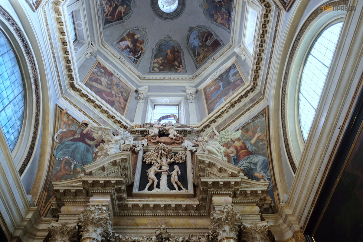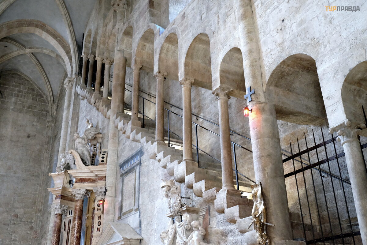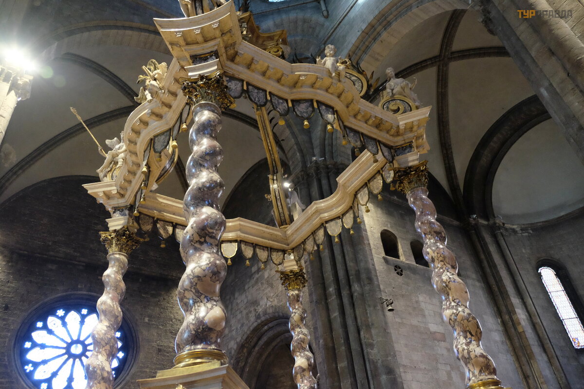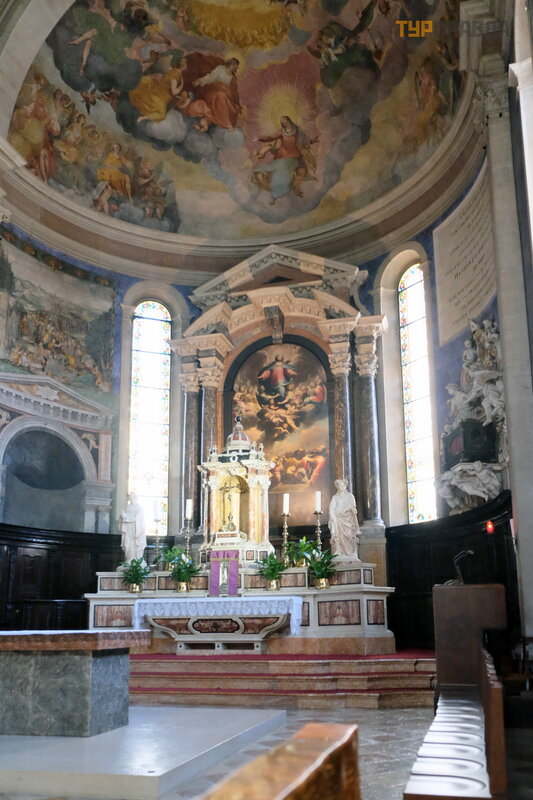 Barokowe cyborium (1739) przysł ania urnę z relikwiami ś w. Wigiliusza.