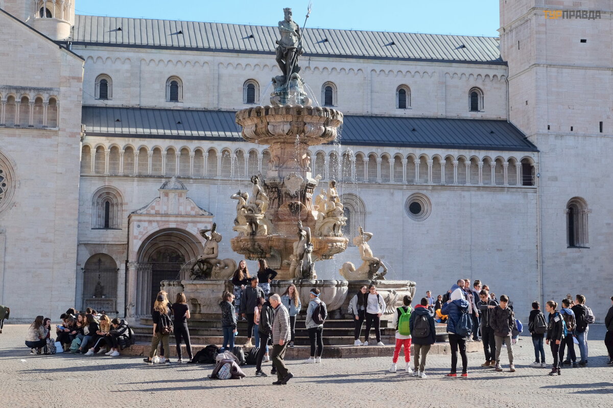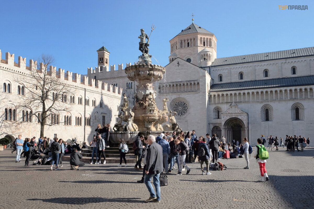 Tu udajemy się na pię kny plac Duomo. Opró cz katedry ś w. Wigilii otacza ją Palazzo Pretorio i stare budynki mieszkalne. Na ś rodku placu znajduje się fontanna Neptuna.