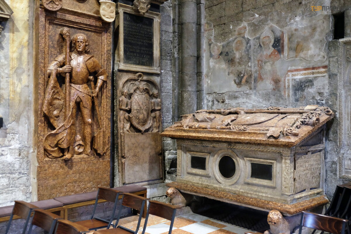 W pobliż u wznosi się potę ż na 40-metrowa wież a Vanga z XIII wieku,
