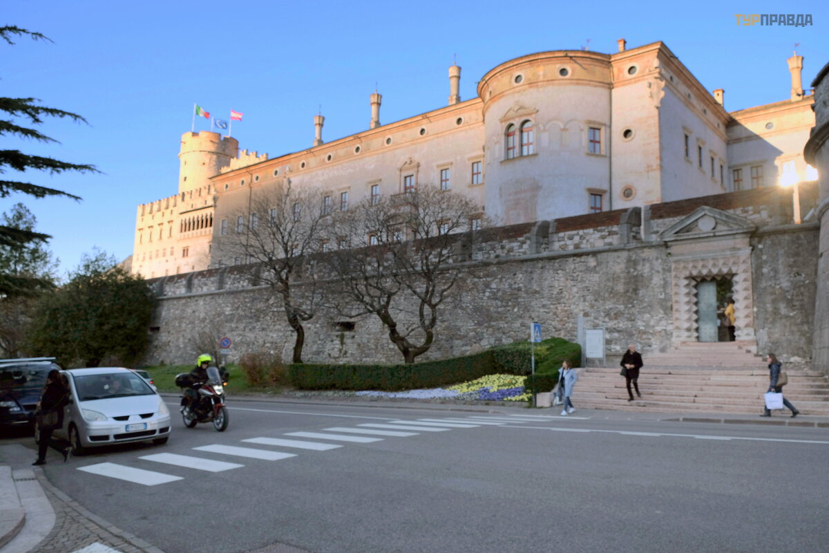 Po zbadaniu katedry poszliś my zobaczyć fortecę Buoncosiglio (Castello del Buonconsiglio). Potę ż na cytadela z grubymi murami, strzelnicami, wież ami obronnymi, mostem zwodzonym to typowa budowla XIII wieku w stylu romań skim. Po 200 latach dobudowano wysoką Wież ę Orł a (Torre dell'Aquila) - nurt gotycki; wewnę trzne malowidł a wież y - sceny pó r roku - najcenniejszy zabytek sztuki gotyckiej. Ale z braku czasu nie zdą ż yliś my obejrzeć zamku od ś rodka.