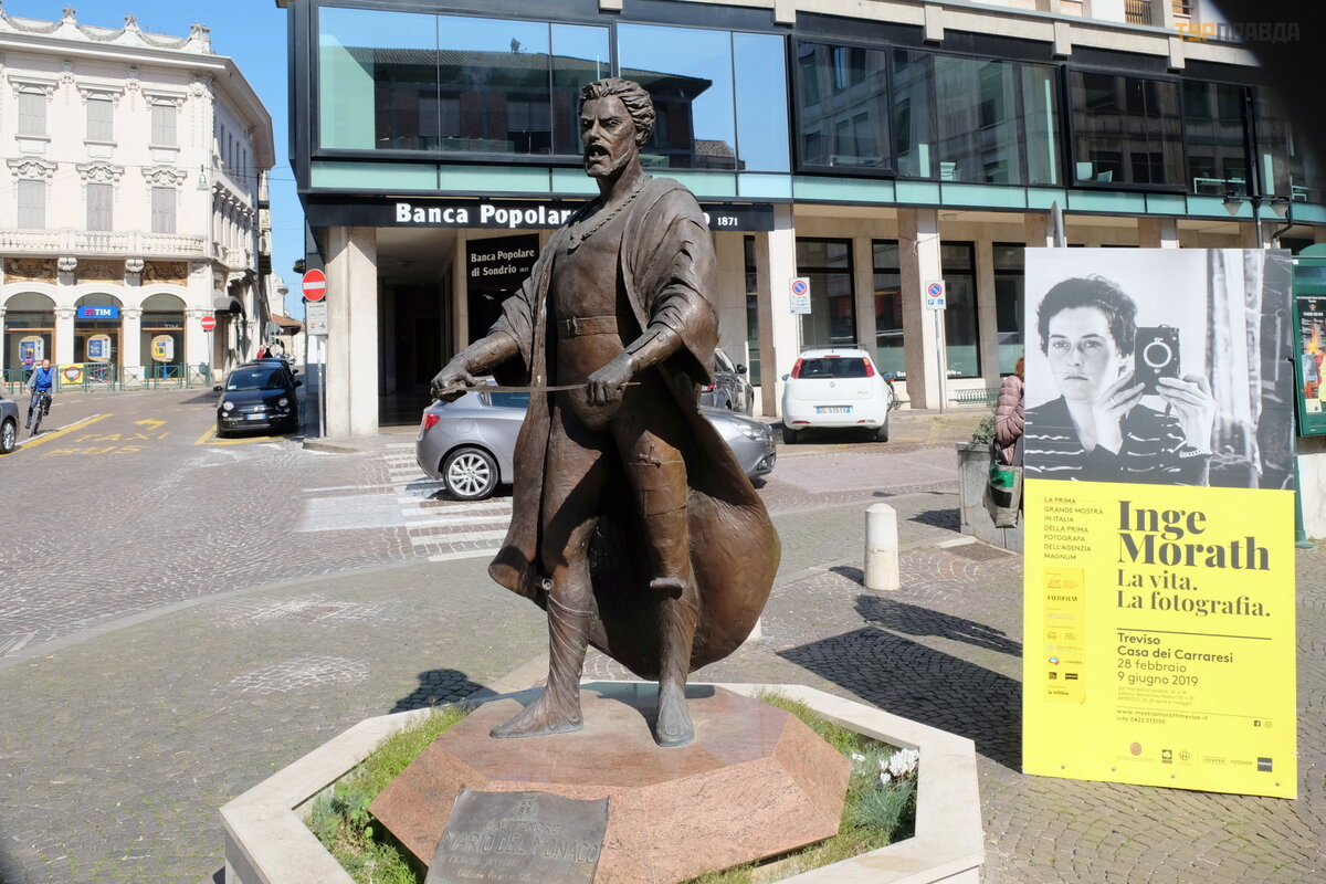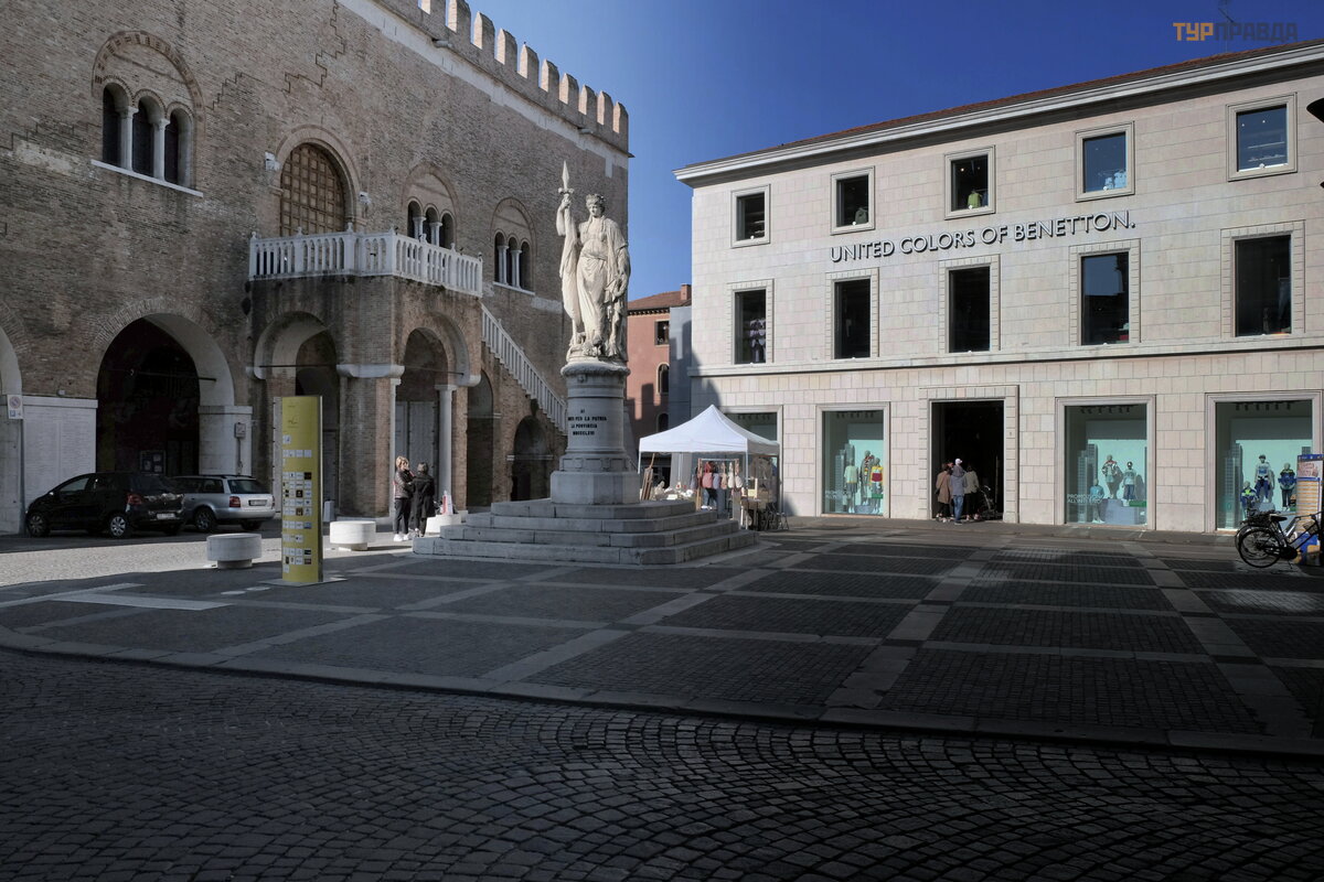 A za pomnikiem widać siedzibę firmy Benetton. Jej zał oż yciel Luciano Benetton pochodzi z Treviso.
