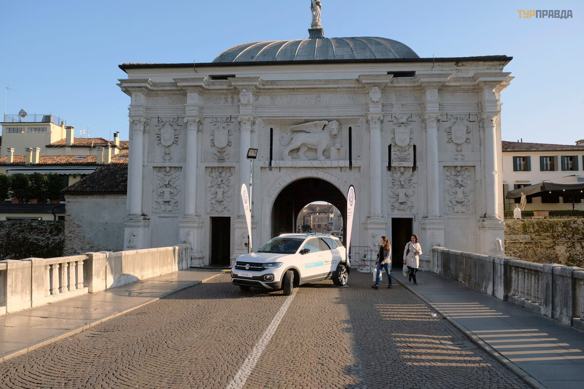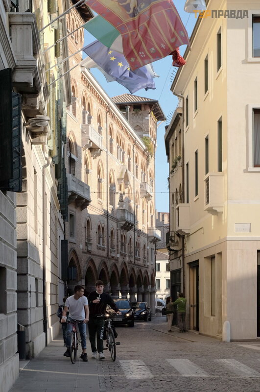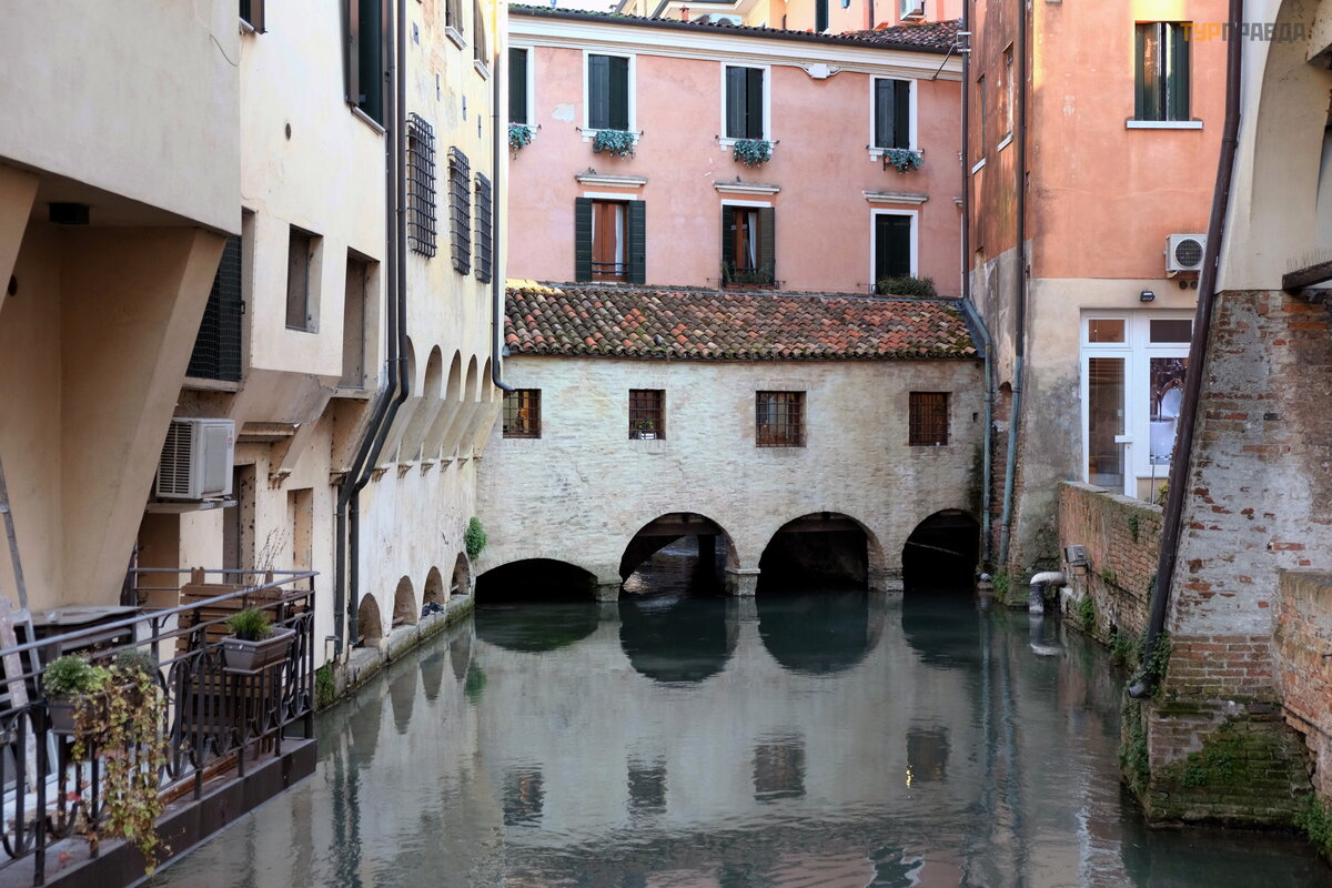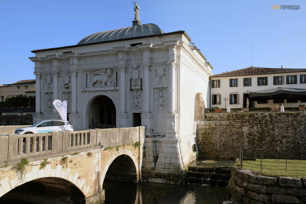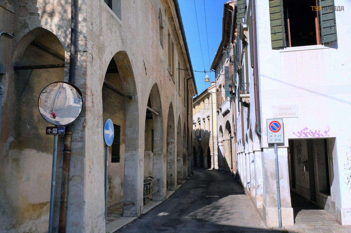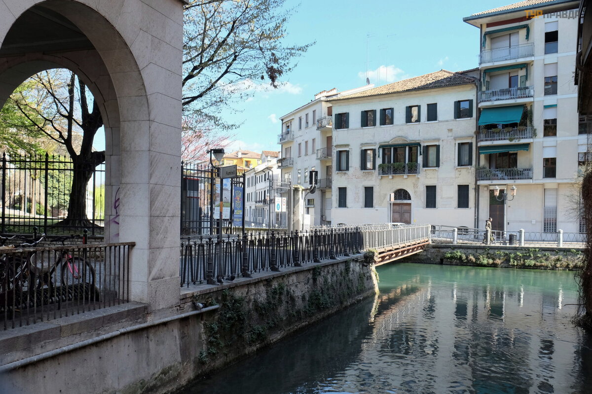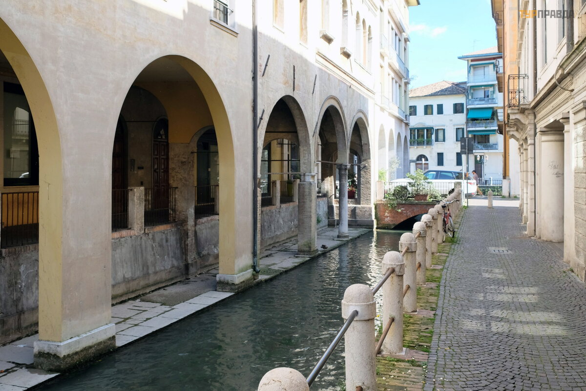 Trzy bramy miejskie zachował y się w Treviso od czasó w panowania Wenecji. Postanowiliś my zobaczyć Bramę ś w. Toma. Idziemy znowu ulicami i kanał ami.