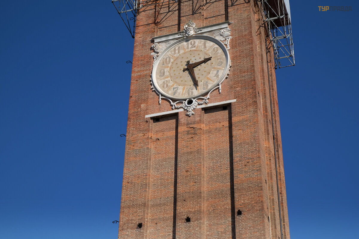 Za pał acem wznosi się gł ó wna wież a miejska Torre Civica, zbudowana w 1218 roku, zwana przez mieszkań có w miasta „Rossignona”: