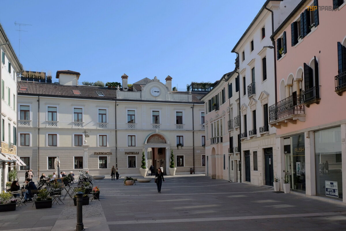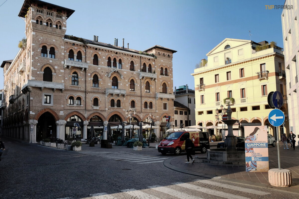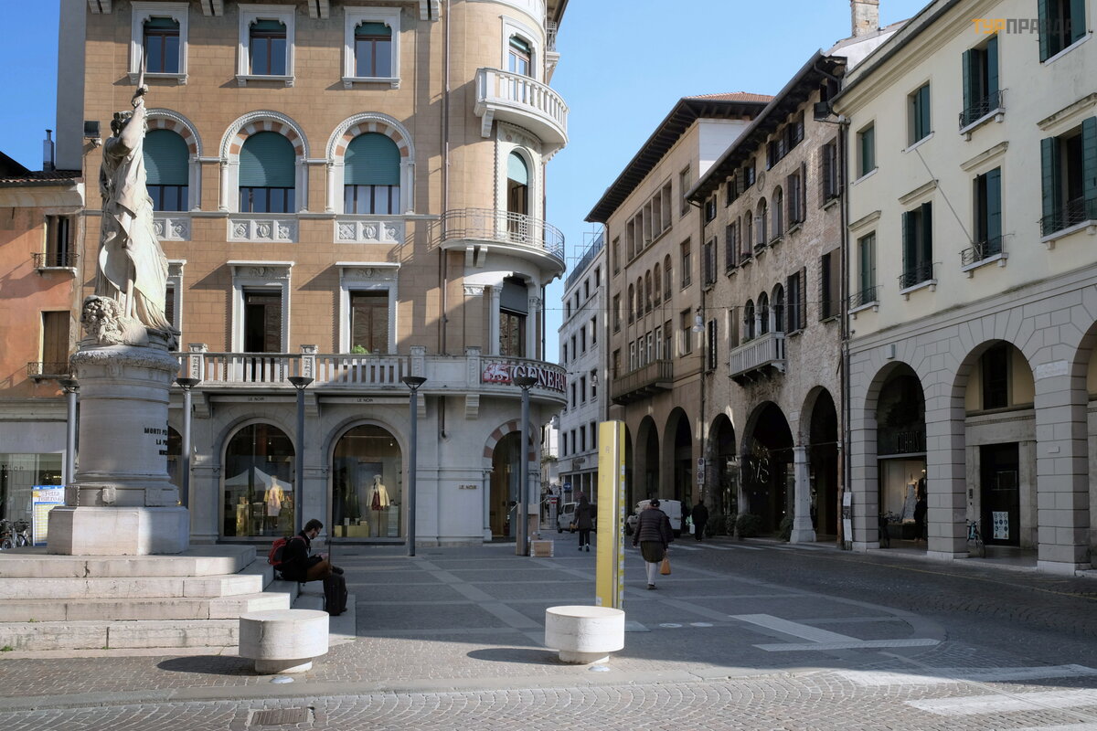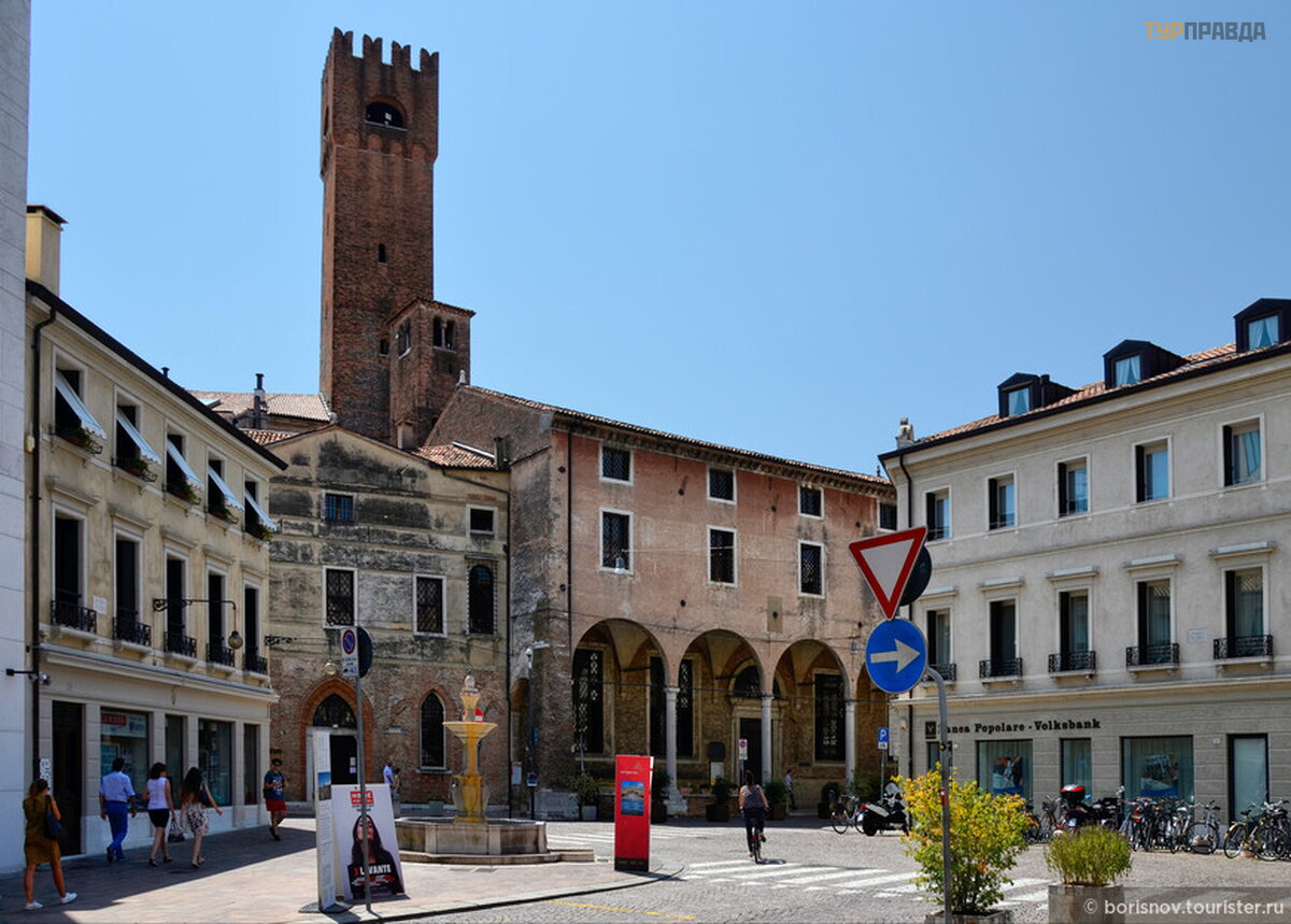 Po przeciwnej stronie placu znajduje się pseudoromań ski budynek Littorio. W Treviso jest kilka takich budynkó w.