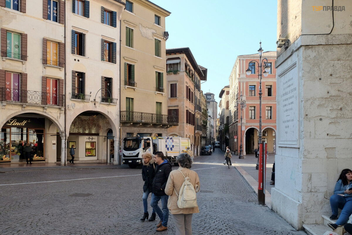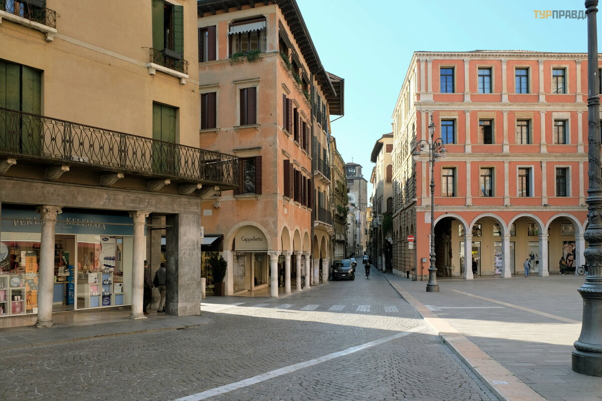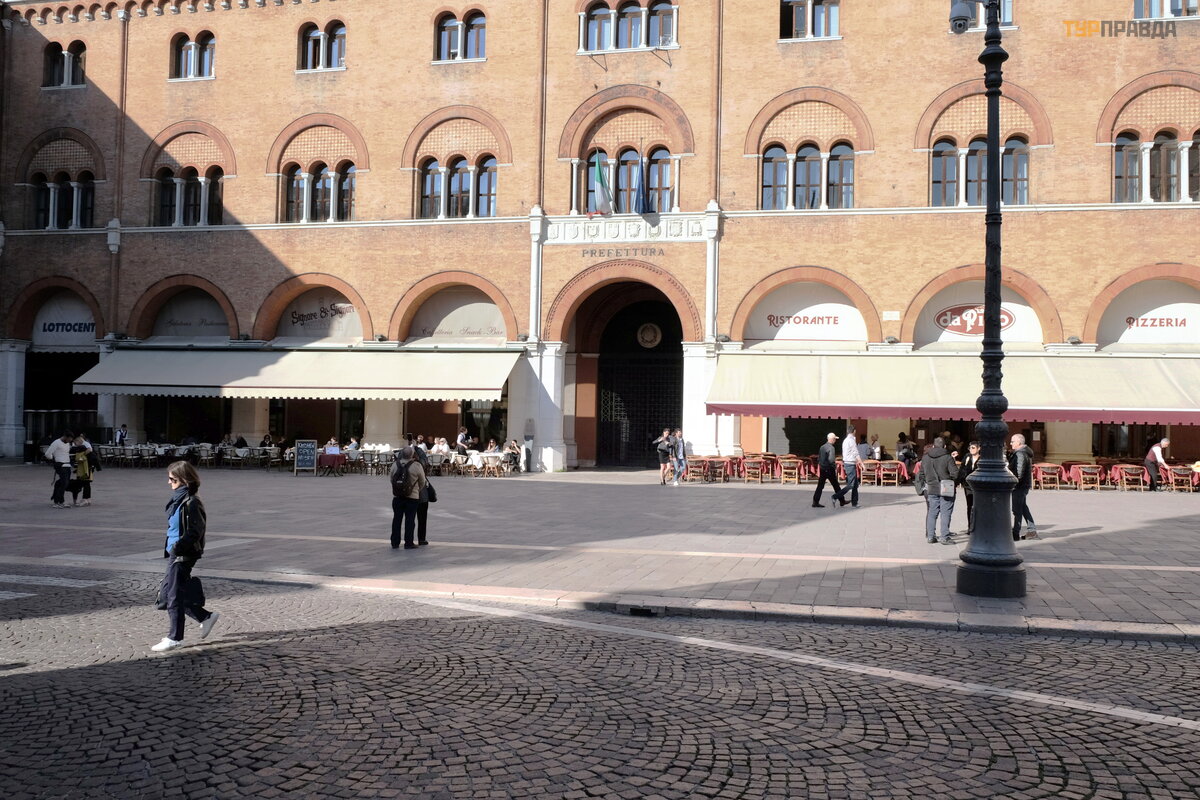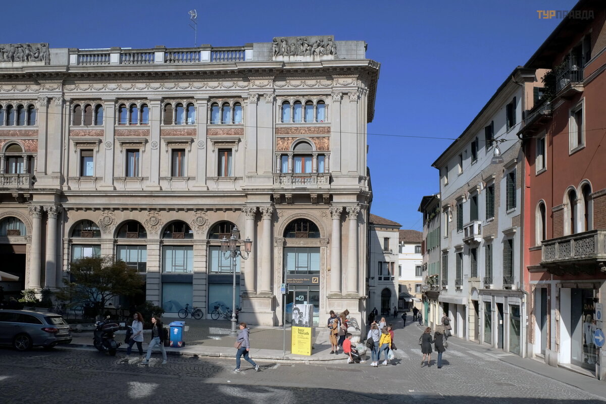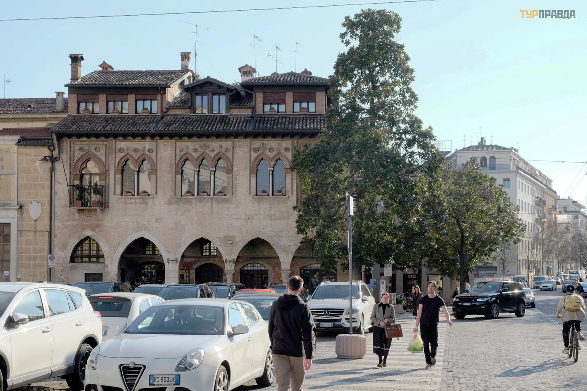 Po przeciwnej stronie placu znajduje się pseudoromań ski budynek Littorio. W Treviso jest kilka takich budynkó w.