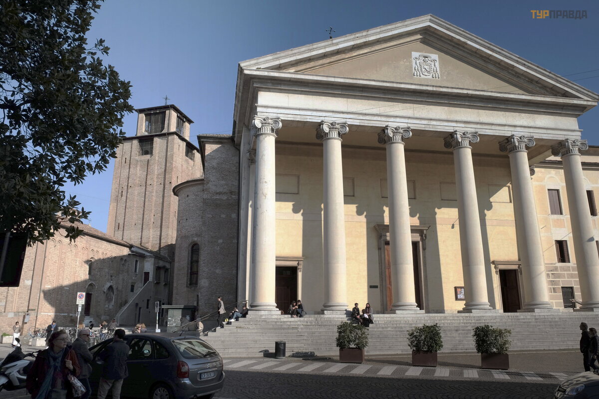 Ale fasada katedry z widokiem na Plac Katedralny (Piazza Duomo) bardziej przypomina fasadę teatru. Został doł ą czony do koś cioł a w 1836 r. , kiedy trwał y prace restauracyjne ś wią tyni po okupacji francuskiej.