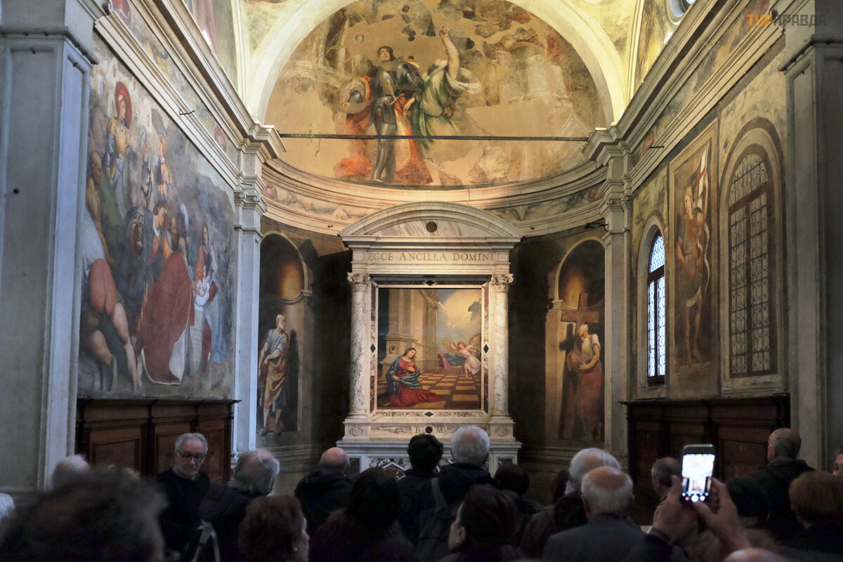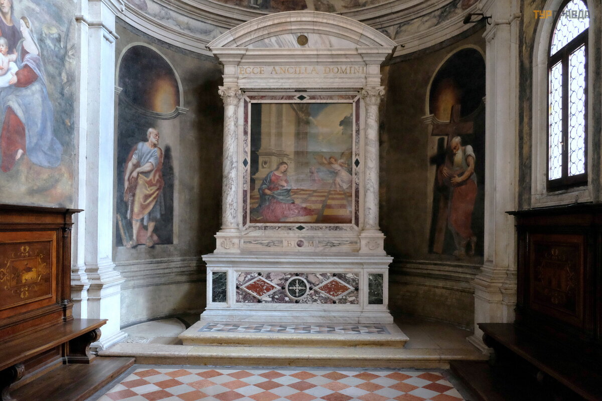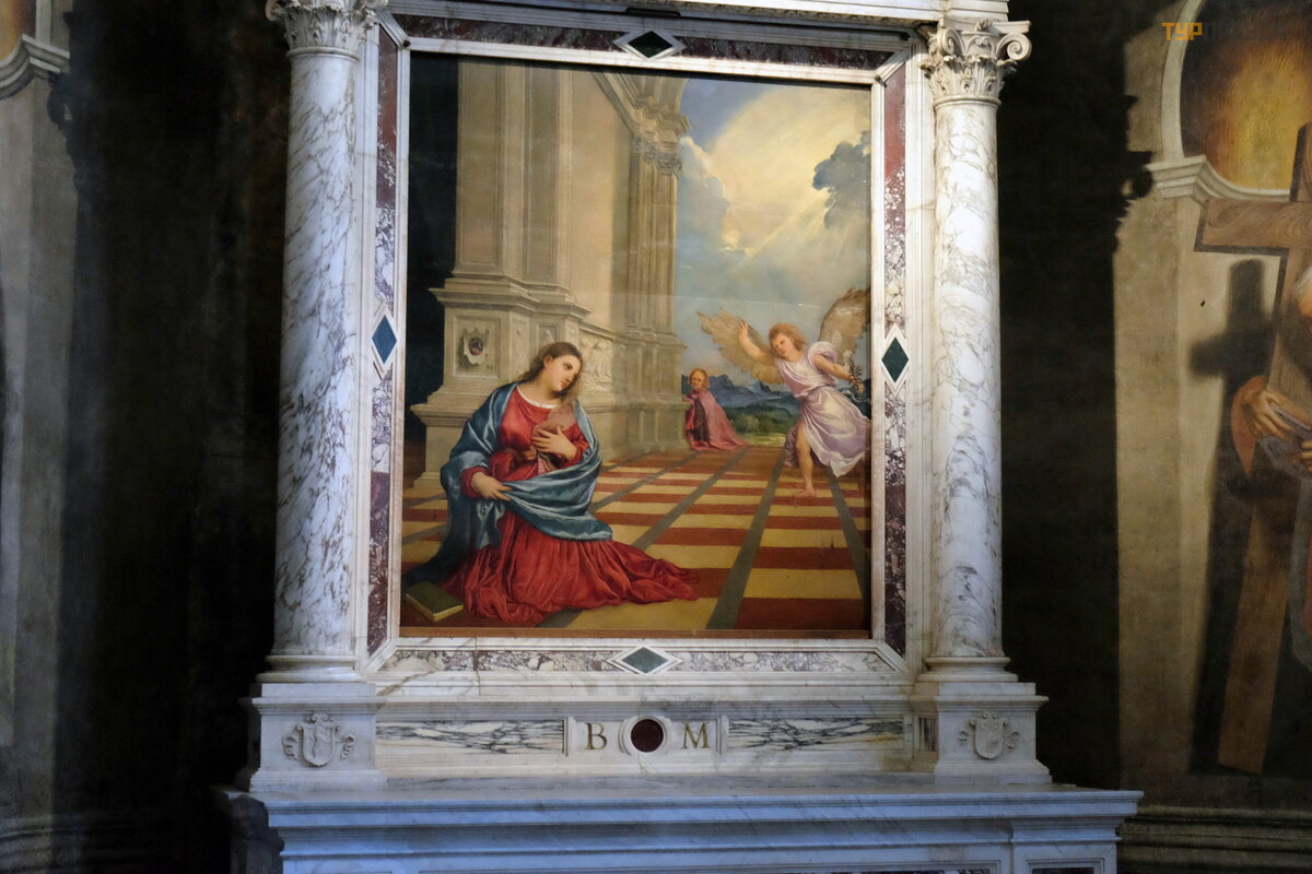 Najcenniejszym dzieł em sztuki w katedrze jest Zwiastowanie Tycjana. . .
