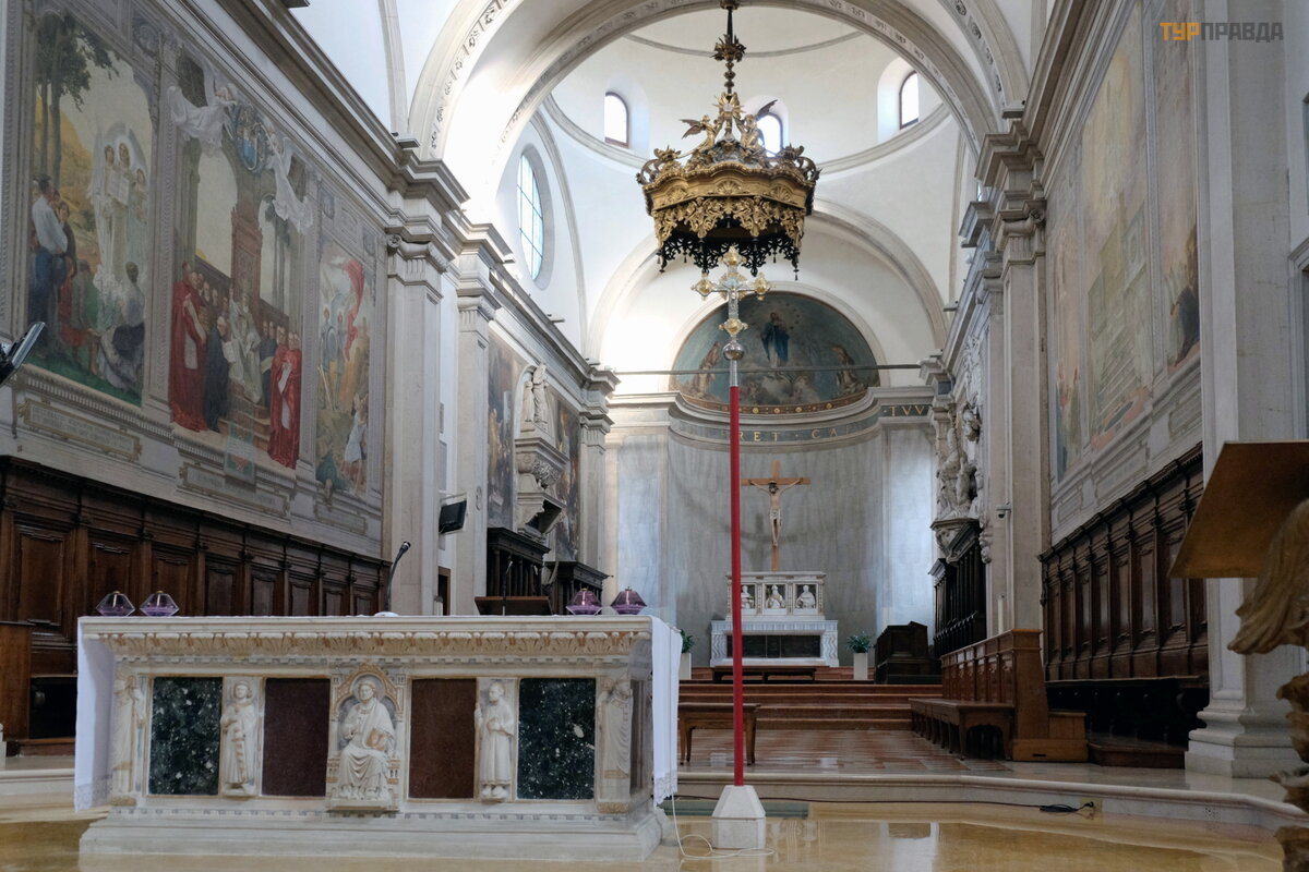 Katedra Ś wię tego Apostoł a Piotra (Catedrale di San Pietro Apostolo) został a zał oż ona we wczesnym okresie chrześ cijań skim. Już w VI wieku na jego miejscu stał koś ció ł . Sama katedra pochodzi z XII wieku, kiedy został a zbudowana w typowym stylu romań skim.