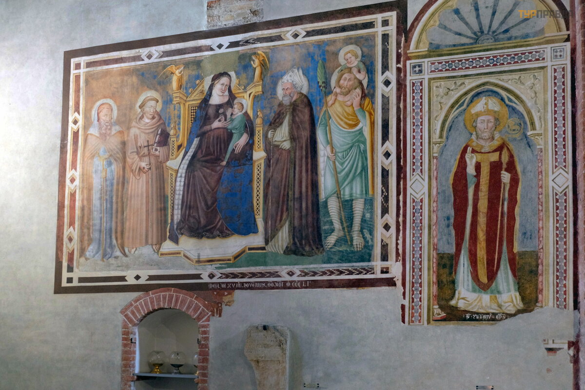 Wewną trz moż esz zobaczyć wspaniał e dzieł a sztuki, a takż e podziwiać niezwykł e freski.
