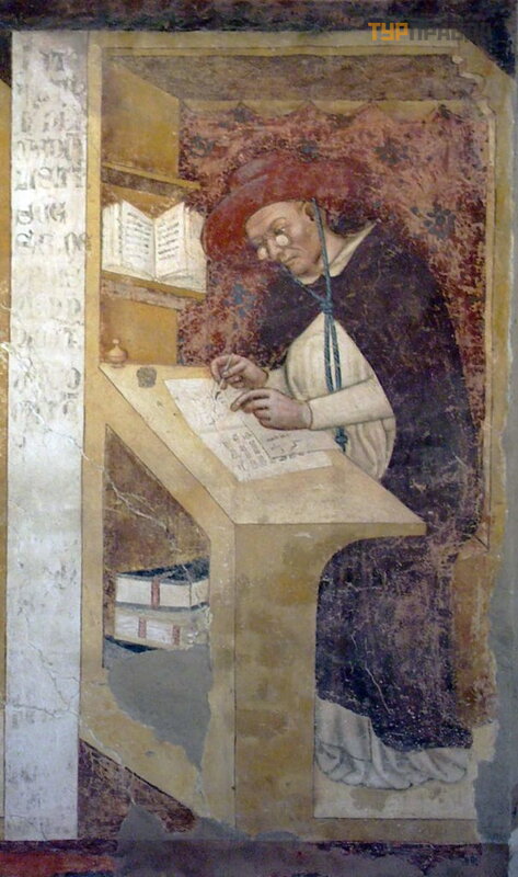 Ciekawy fresk „Mnich w okularach” artysty Tomasa da Moderny jest uważ any za pierwszy obraz okularó w w ś wiatowym malarstwie: