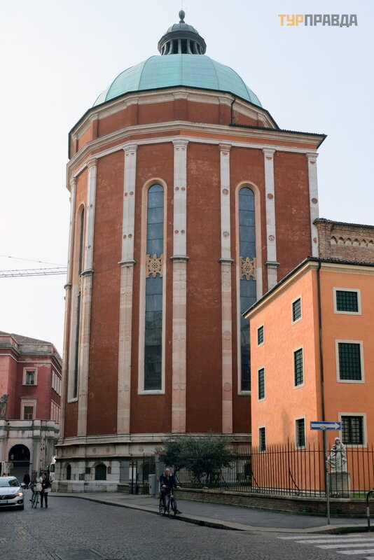 Katedra Vicenzy Santa Maria Annuncata to dziwny dł ugi ceglany budynek z oddzielną kopuł ą i fasadą z biał ego kamienia.