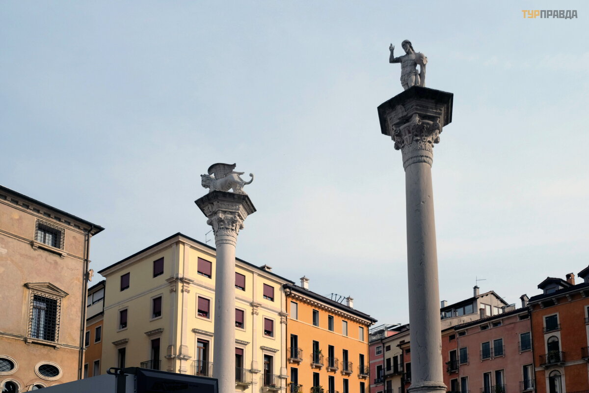 Plac ozdobiony jest dwiema kolumnami, z któ rych pierwsza jest z lwem ś w. Znaczek został zainstalowany w 1464 roku, a drugi z figurą Chrystusa pojawił się na placu w 1640 roku.