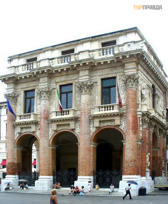 To pierwszy projekt Palladio w Vicenzy - odrestaurowanie gotyckiego pał acu Palazzo della Ragione, któ ry istniał w tym miejscu. Pod koniec XV wieku. zawalił się poł udniowo-zachodni naroż nik pał acu. W kolejnym pó ł wieczu wielu wybitnych architektó w nie odważ ył o się odnowić budowli. Ostatecznie w 1546 r. przeją ł ją mł ody, mał o znany architekt. Palladio dodał Serlianę do gotyckiego pał acu - loggię i portyk z pó ł kolistymi arkadami. Loggia jest prawie pierwszym projektem, w któ rym zastosowano element architektoniczny „Okno weneckie”, zwany pó ź niej takż e Palladianem. Dekorację fasady ukoń czono po ś mierci Palladia. Od 2007 roku Bazylika Palladiana przeszł a gruntowną renowację . Obecnie budynek peł ni funkcję centrum wystawienniczo-kulturalnego.