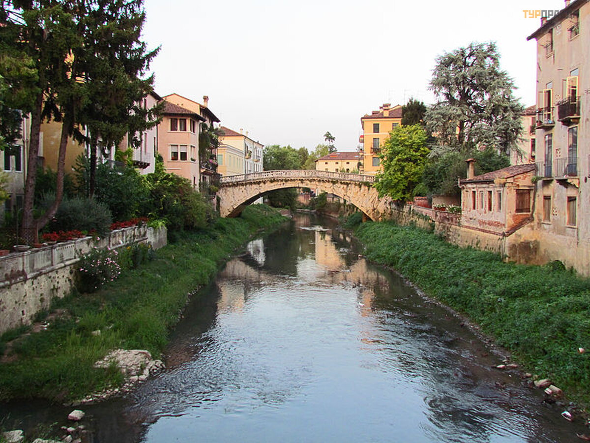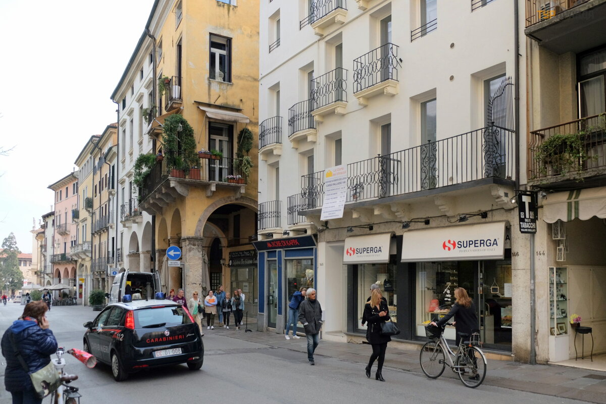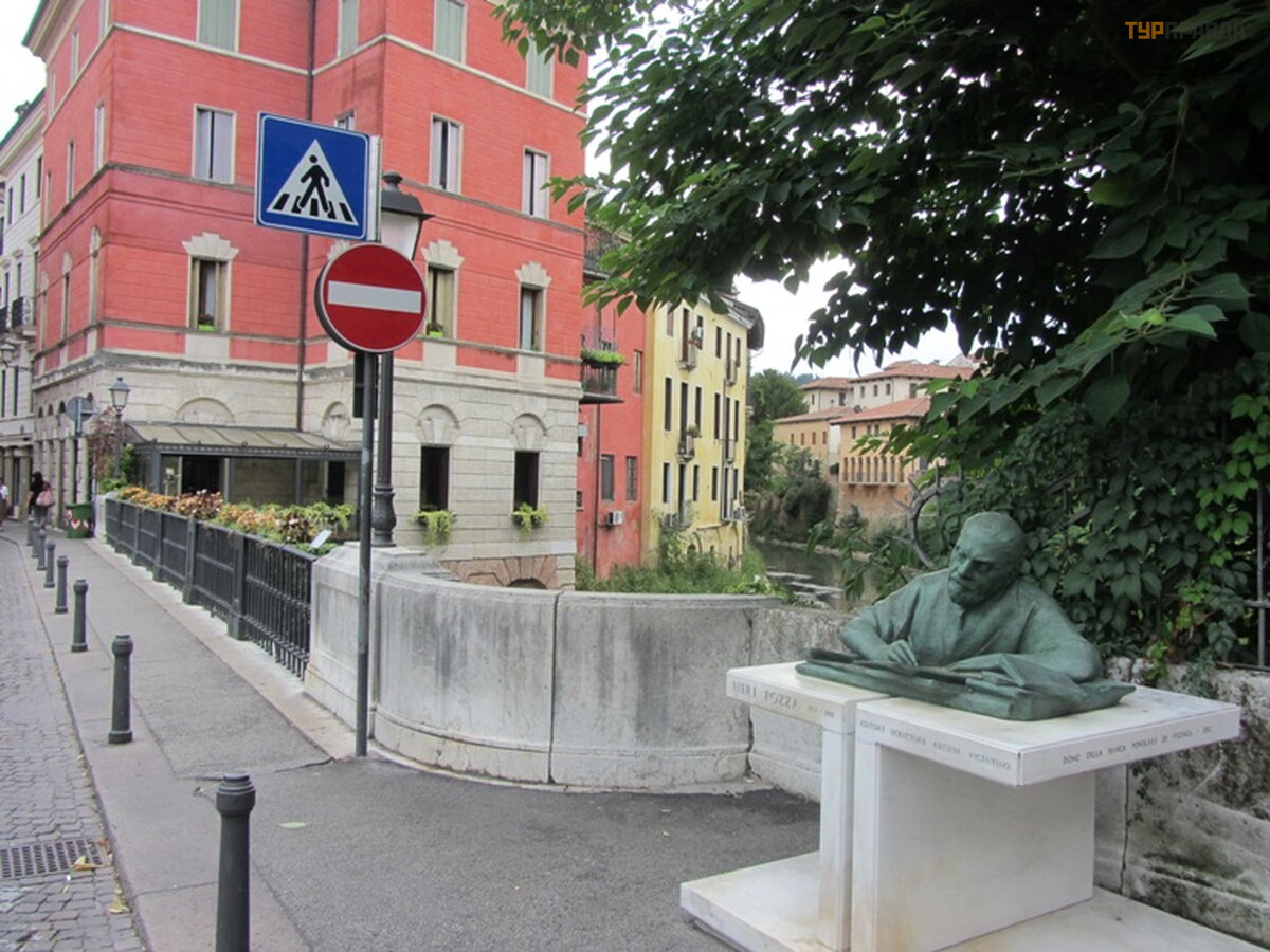 Tutaj zrobiliś my sobie kró tką przerwę na lunch i udaliś my się w okolice Placu Castelloc „Ś cież ka Czterech Mostó w”, z któ rego roztacza się widok na domy obmywane przez powolne wody rzeki Retrone. Ta czę ś ć miasta radykalnie ró ż ni się od „palladiań skiej” twarzy Vicenzy