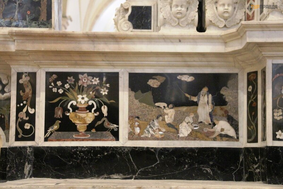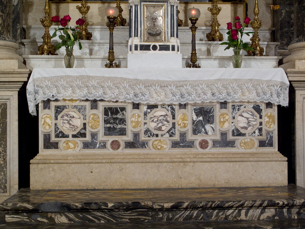 Oł tarz pochodzi z lat 1667-1669, instrukcje wykonane są z kamieni pó ł szlachetnych przez florenckiego mistrza Corbarelli, któ ry w latach 1670-1671. zbudował takż e ś wią tynię nad oł tarzem. Okazał y kompleks stoi na trzech stopniach, ozdobionych intarsjami, motywami geometrycznymi i roś linnymi.