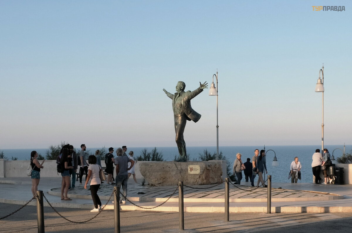 Na nasypie znajduje się pomnik sł ynnego rodaka, piosenkarza Domenico Modugno, któ ry ś piewa najsł ynniejszą piosenkę Volare - latać .