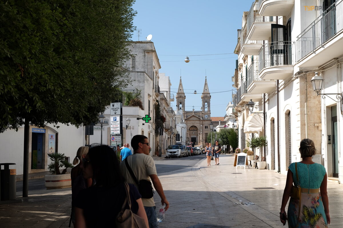 Spacerem Via Monte Michele obok handlowego centrum miasta. . .