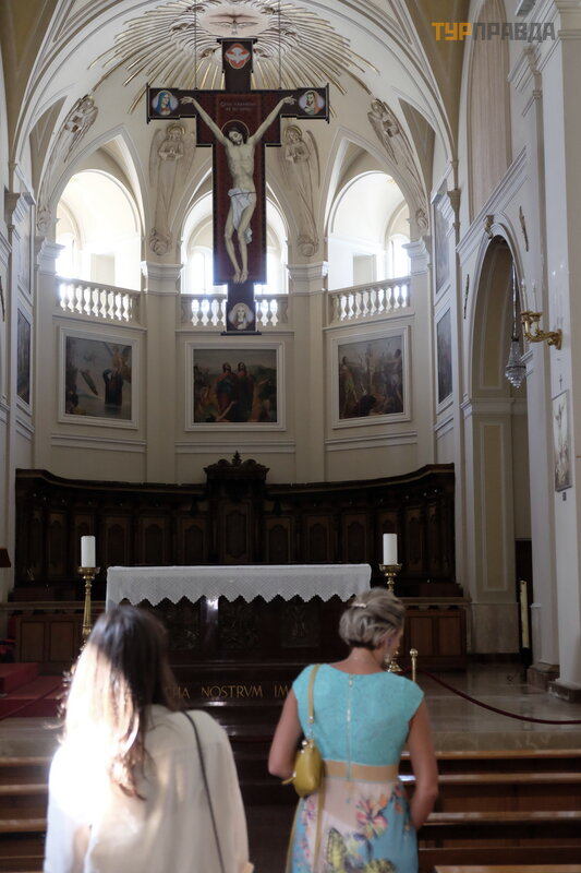 Po prawej stronie tego placu znajduje się pię kny koś ció ł ś w. Franciszka z Asyż u, zbudowany w XIII wieku, ale z pierwotnego koś cioł a pozostał a tylko dzwonnica. W XVIII wieku elewację przebudowano w stylu barokowym.