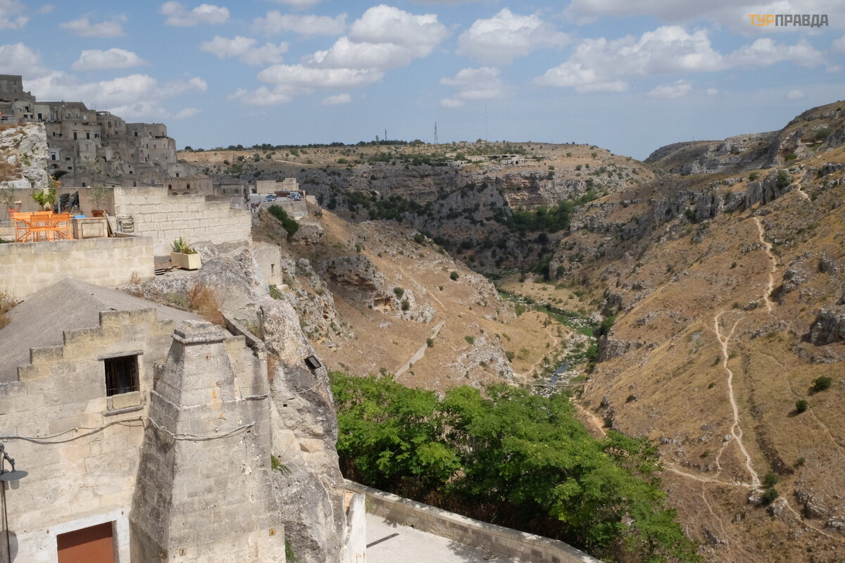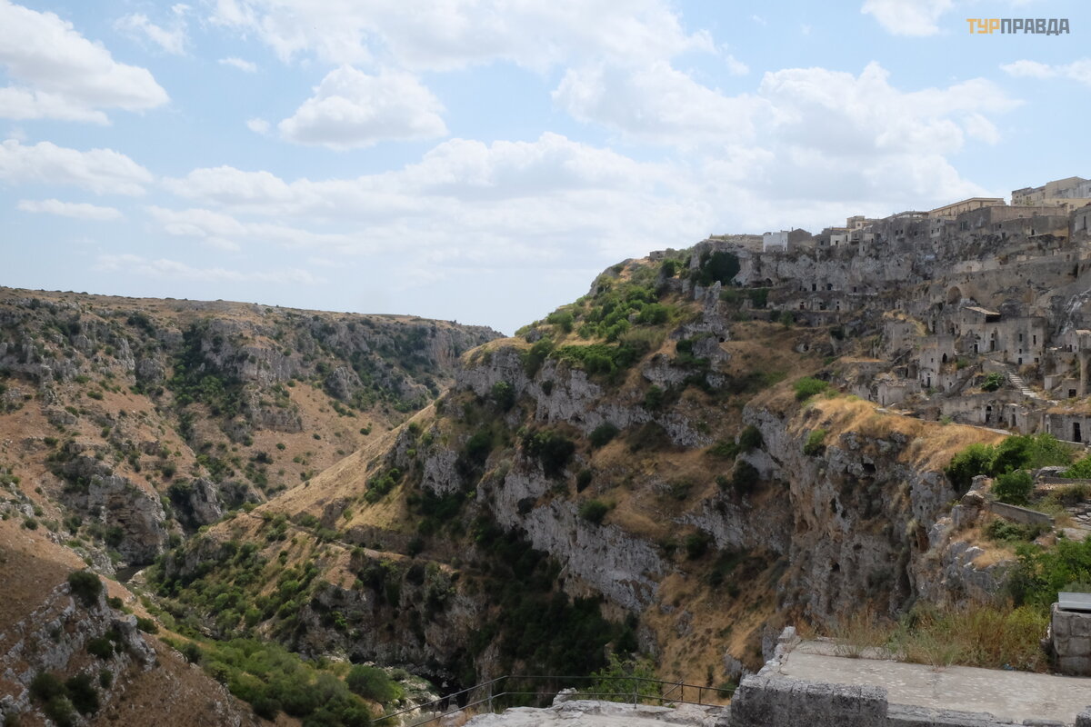 Miasto powstał o na przeciwległ ych zboczach doliny rzeki zwanej szczeliną Gravina di Matera.