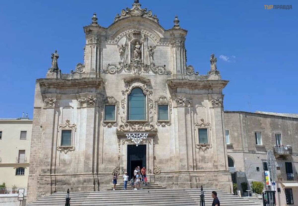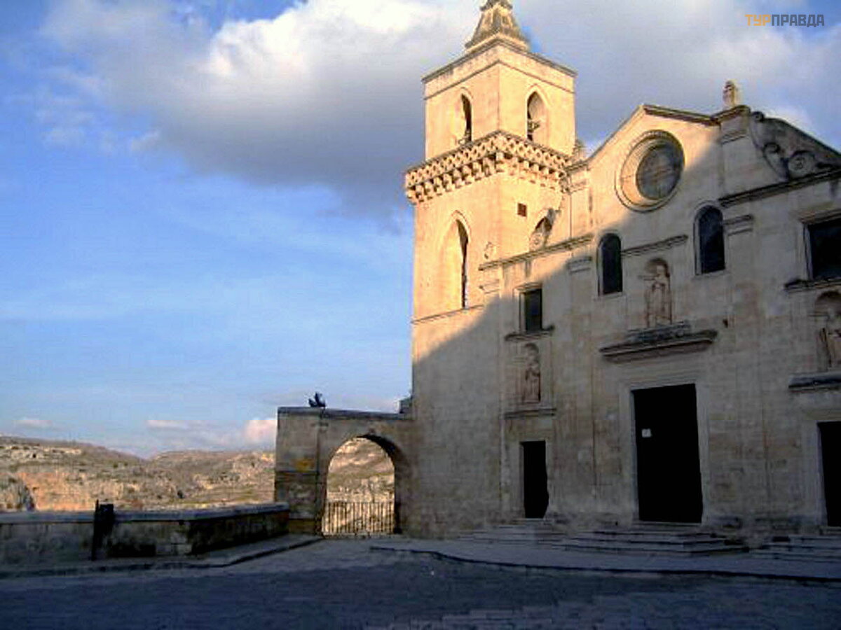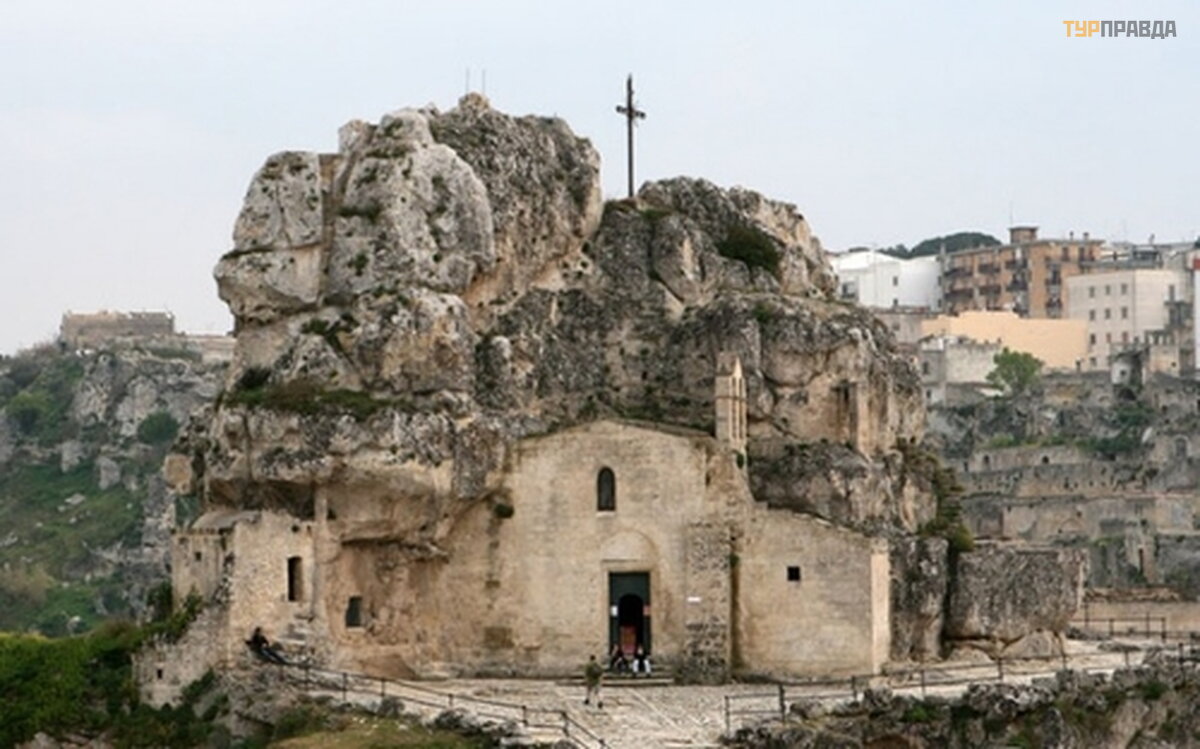 z wieloma celami i unikalnymi podziemnymi koś cioł ami wykutymi w kamieniu, takimi jak Bazylika ś w. Piotra Barisano, poł oż ona w pó ł nocno-zachodniej czę ś ci Sassi. Budynek ten jest doskonał ym przykł adem architektury ś redniowiecznej. Fasada wykonana jest ze skał tufowych, a wnę trze to prawie kamienna jaskinia.