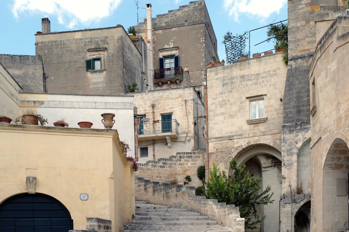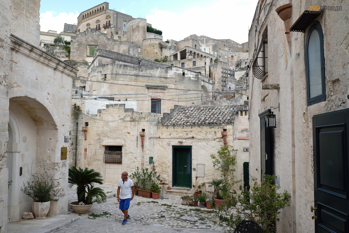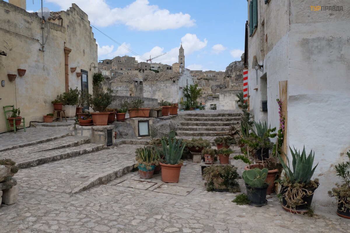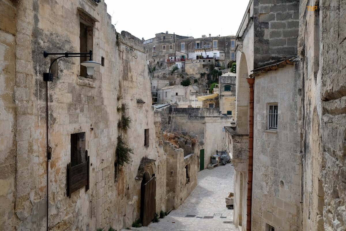 Tu w Materze mieliś my mał o czasu na zwiedzanie. Bardzo ciekawie jest wę drować tylnymi uliczkami, gdzie chodnik jest dachem budynku poniż ej. Być moż e w wieczornym ś wietle ten widok był by szczegó lnie urzekają cy.