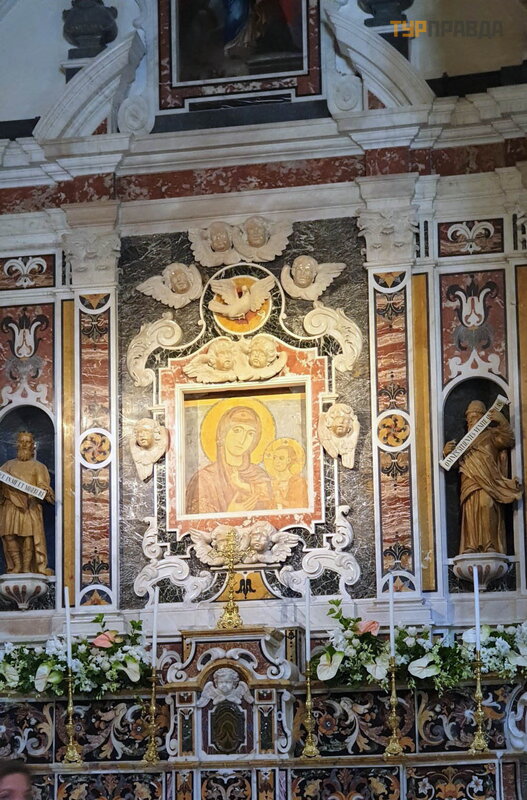 W katedrze znajduje się sł ynny bizantyjski fresk Madonna della Bruna, uważ ana za patronkę miasta.