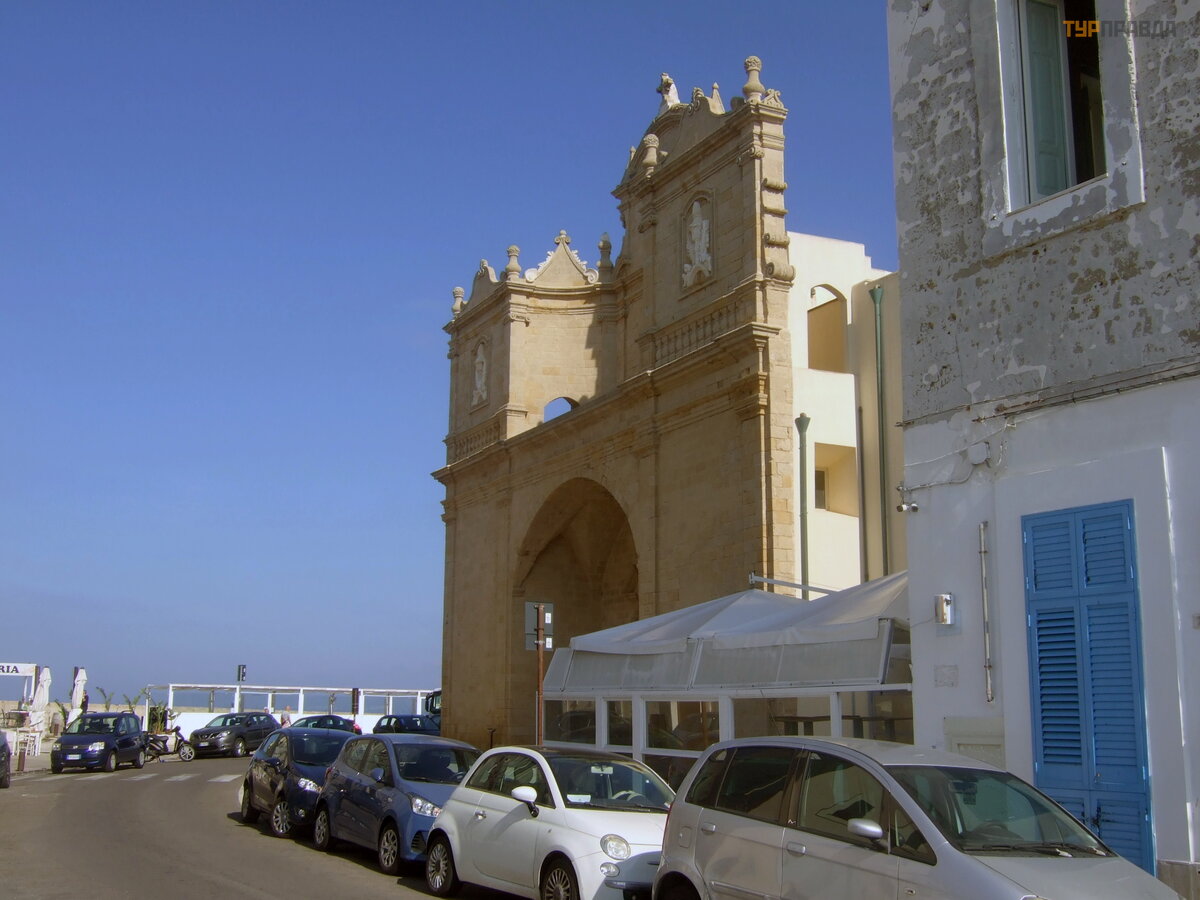 . . . pod nazwą koś cioł a Santa Maria della Purita, któ ry znajduje się tuż nad plaż ą . To najstarsze i najbardziej malownicze sanktuarium Gallipoli został o wzniesione w 1664 roku. Zbudowany na koszt cechu ł adowaczy, sł uż ył im jako kaplica. Pó ź niej znaleź li tu schronienie przedstawiciele ró ż nych bractw.