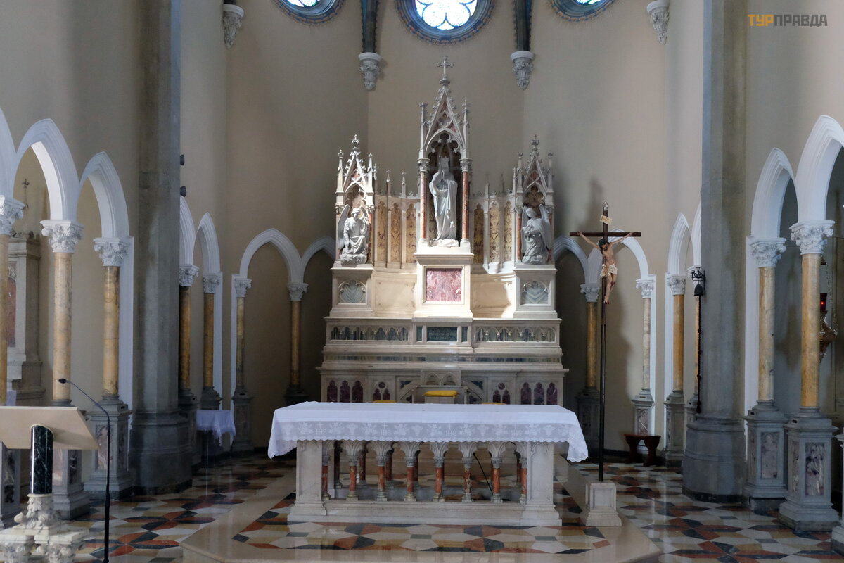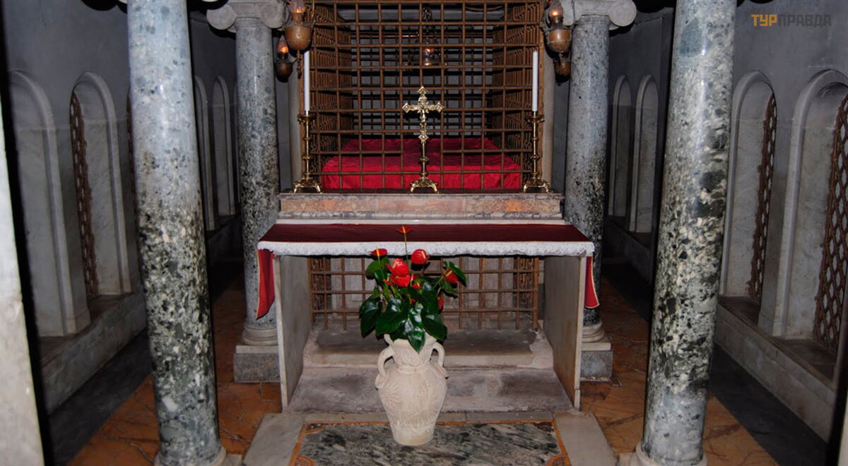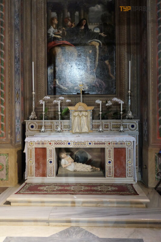 Gł ó wne sanktuarium koś cioł a jest jednym z instrumentó w Mę ki Pań skiej - w kaplicy ś w. Zenona znajduje się filar, do któ rego przywią zany był Chrystus podczas biczowania. Ten ostatni, ze wzglę du na swoją wyją tkową urodę , został nazwany „Ogrodem Edenu”.