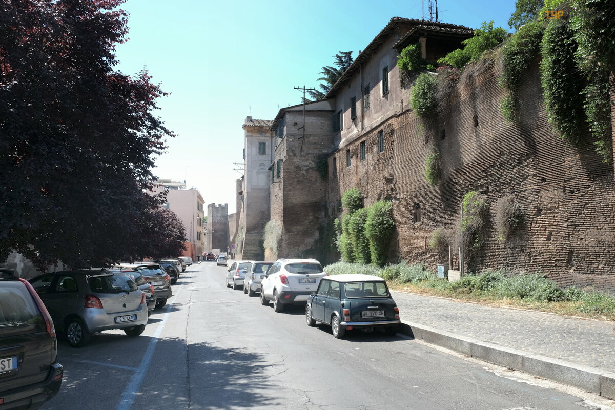 Nastę pnie poszliś my wzdł uż Muru Aureliana. Wcześ niej Via Tiburtina zaczynał a się od Bramy Tyburtyń skiej, jest to przejś cie przez mur Aureliana. Stą d zaczę ł a się stara droga do Tivoli.