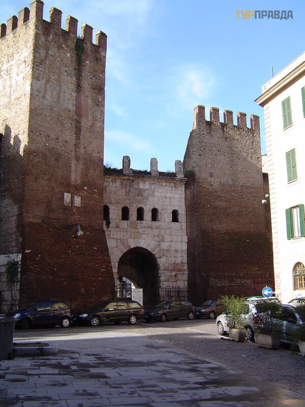 Brama Tyburtyń ska. Ł uk został zbudowany za cesarza Augusta w 5 rpne. mi. Podczas budowy Muru Aureliana w 271 r. wmurowano ł uk w mur,