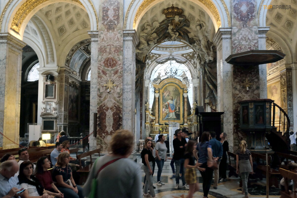 Koś ció ł San Agostino, w któ rym znajduje się kolejny obraz Caravaggia, ró wnież znajduje się niedaleko Piazza Navona, ale zawsze jest zamknię ty na sjestę do godziny 16.00, wię c postanowiliś my podziwiać obrazy artysty w koś ciele Santa Maria del Poppolo.