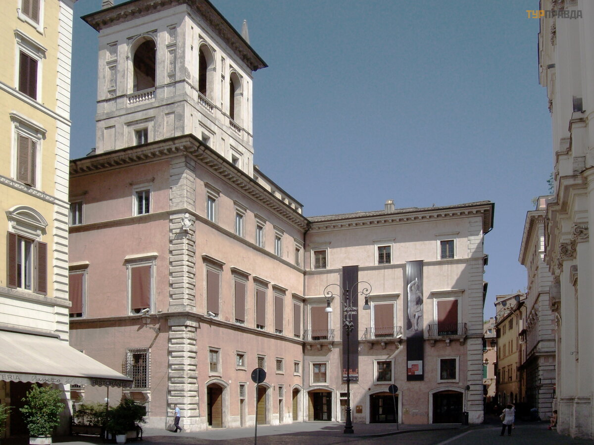 Naprzeciwko znajduje się wspaniał y budynek z wież yczką - Palazzo Altemps.