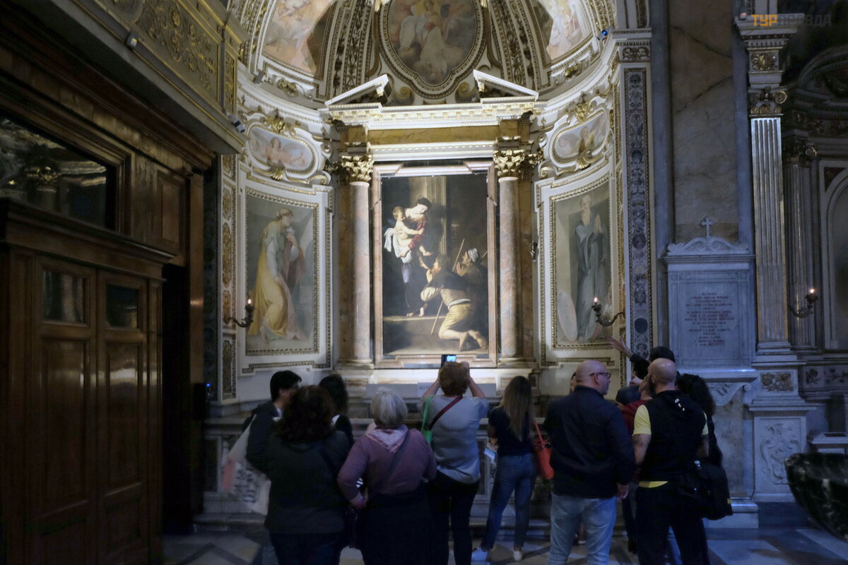 tu jednak przytrafił o się Caravaggio nieszczę ś cie: w koś ciele Santa Maria del Poppolo przygotowywano ś lub, a koś ció ł był zamknię ty dla publicznoś ci. — Ale senor, kyuza, szeregowiec! ”- powiedział po prostu minister do nas i kilku innych, któ rzy chcieli się tam dostać .
