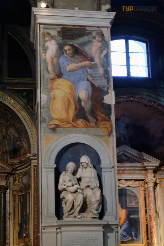 Po lewej stronie nawy znajduje się fresk Rafaela – „Prorok Izajasz”. Mó wią , ż e Michał Anioł był przez niego bardzo uraż ony, ponieważ wierzył , ż e Rafael skopiował jego fresk w katedrze ś w. Piotra.