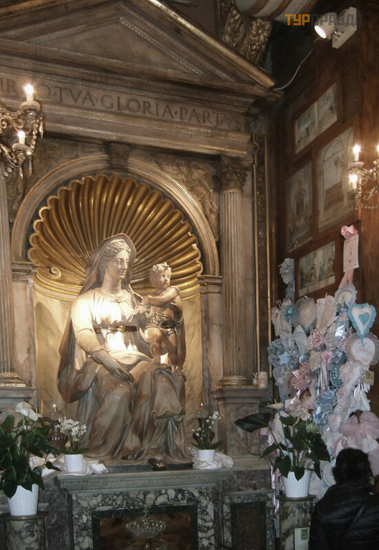 Jacopo Sansovino stworzył rzeź bę Madonna del Parto (Madonna porodowa) (1521). To nie są krewni - jego nazwisko przyją ł Jacopo, uczeń Andrei Sansovino. Ta cudowna Matka Boż a uważ ana jest za najbardziej czczoną z wielu znajdują cych się w rzymskich koś cioł ach, ponieważ kobiety w cią ż y zwró cił y się do niej o pomoc podczas porodu.